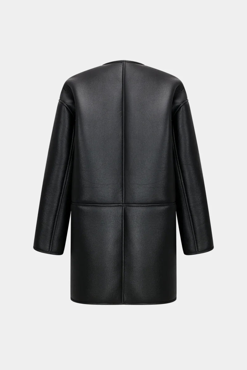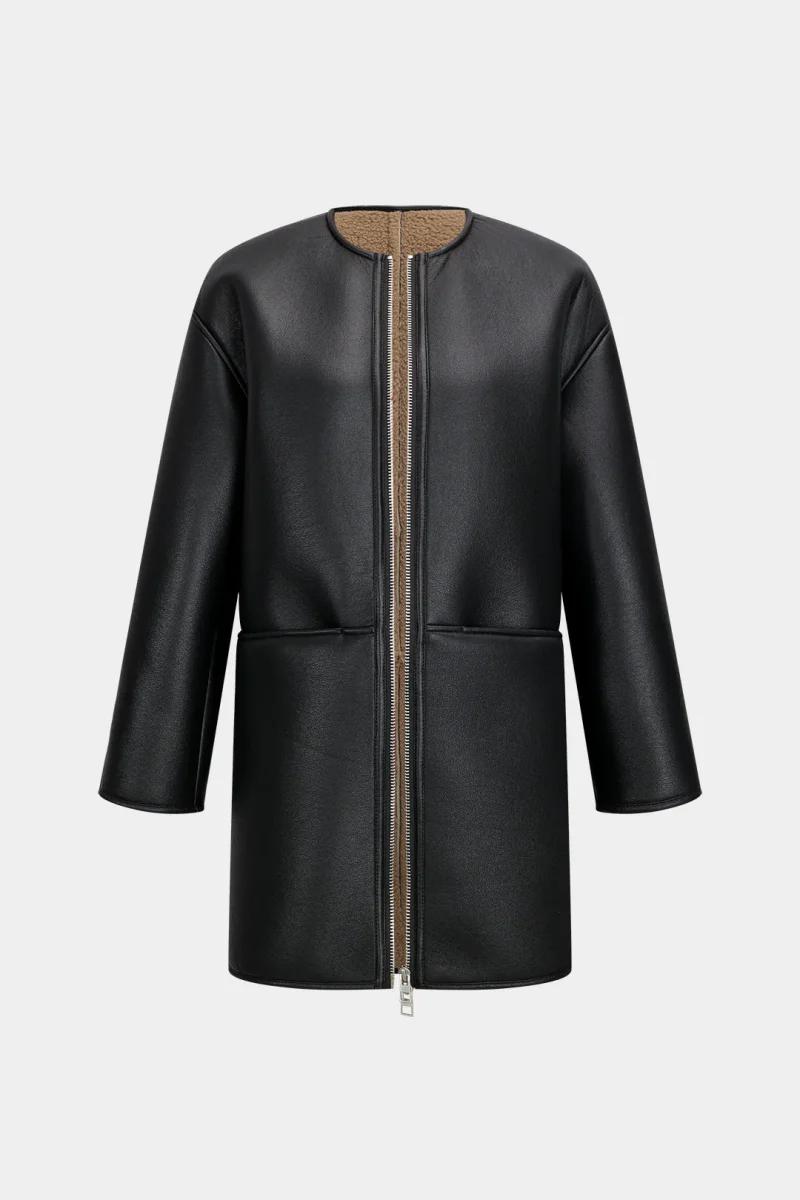 Long Zip Coat Lined Leather Effect | Structured Minimalism and Modern Warmth