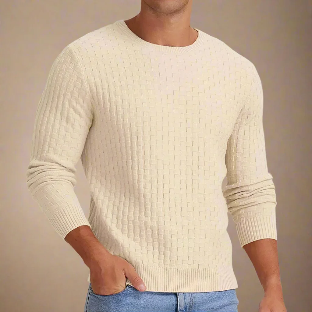 Le pull Matias se distingue par son motif tressé raffiné et sa coupe ajustée, offrant une allure élégante et moderne.