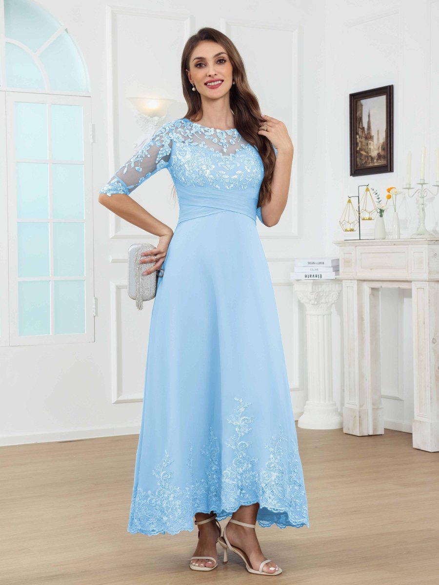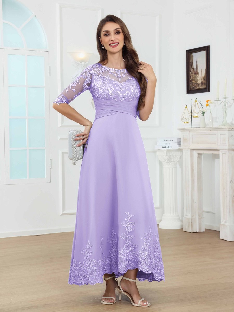 Robes D’Invitées De Mariage À Midi Manches Courtes Avec Ceinture Emerie