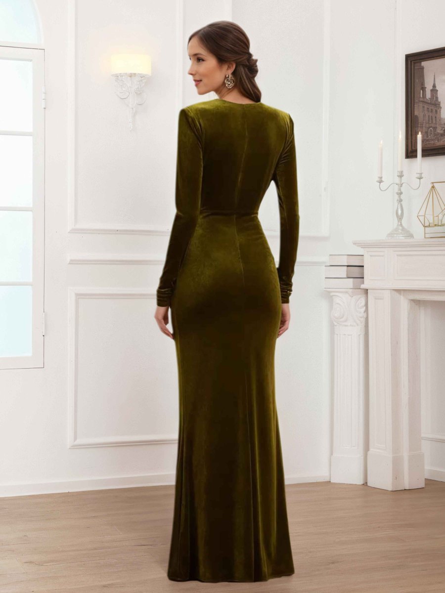 Mère De Mariée En Velours À Royale Gaine Col V Manches Longues Longueur Au Sol Elsinore