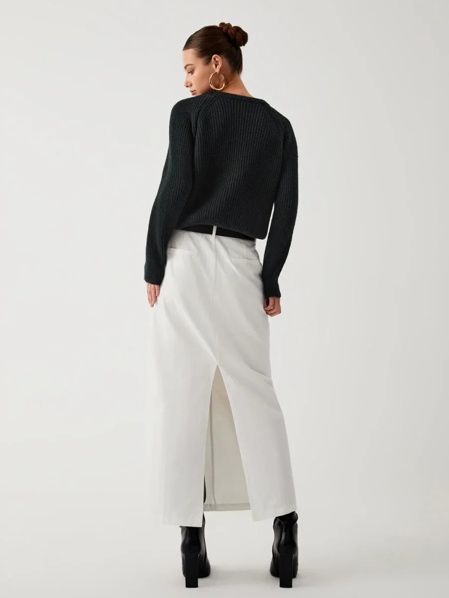 Le pull Mila revisite le classique avec ses découpes aux épaules qui ajoutent une touche audacieuse et moderne. Son tricot en maille côtelée assure un confort optimal tout en structurant la silhouette avec style.