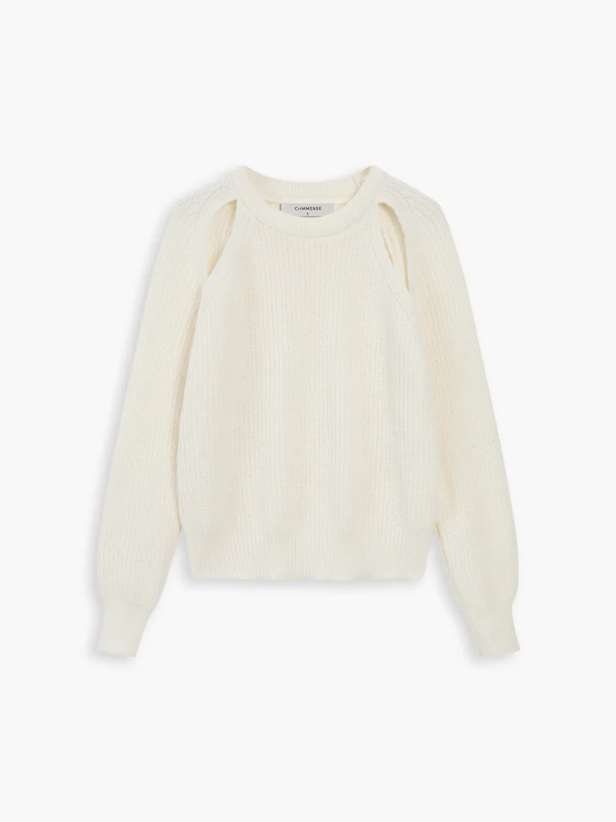Mila – Pull Côtelé | Découpes Épaules | Moderne et Élégant
