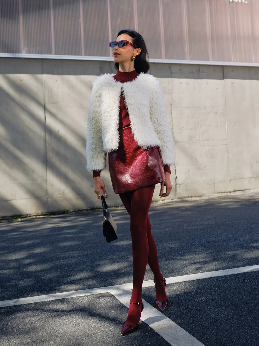 With its soft texture and short cut, it’s perfect for staying chic while staying warm.