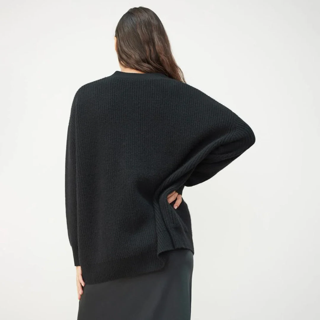 This black cardigan in thick knit is the perfect piece for a casual yet elegant look.