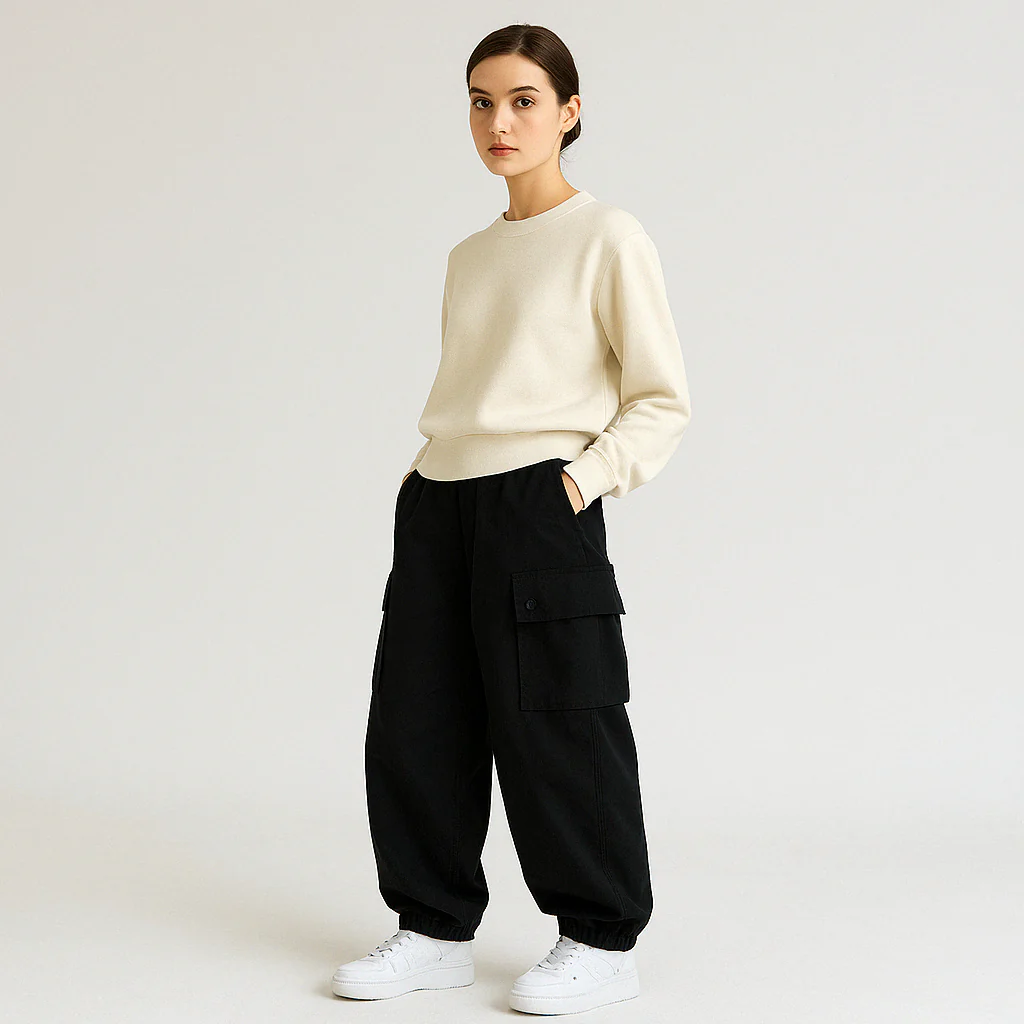 Ce pantalon cargo oversize combine confort, fonctionnalité et style urbain pour un look affirmé et détendu.