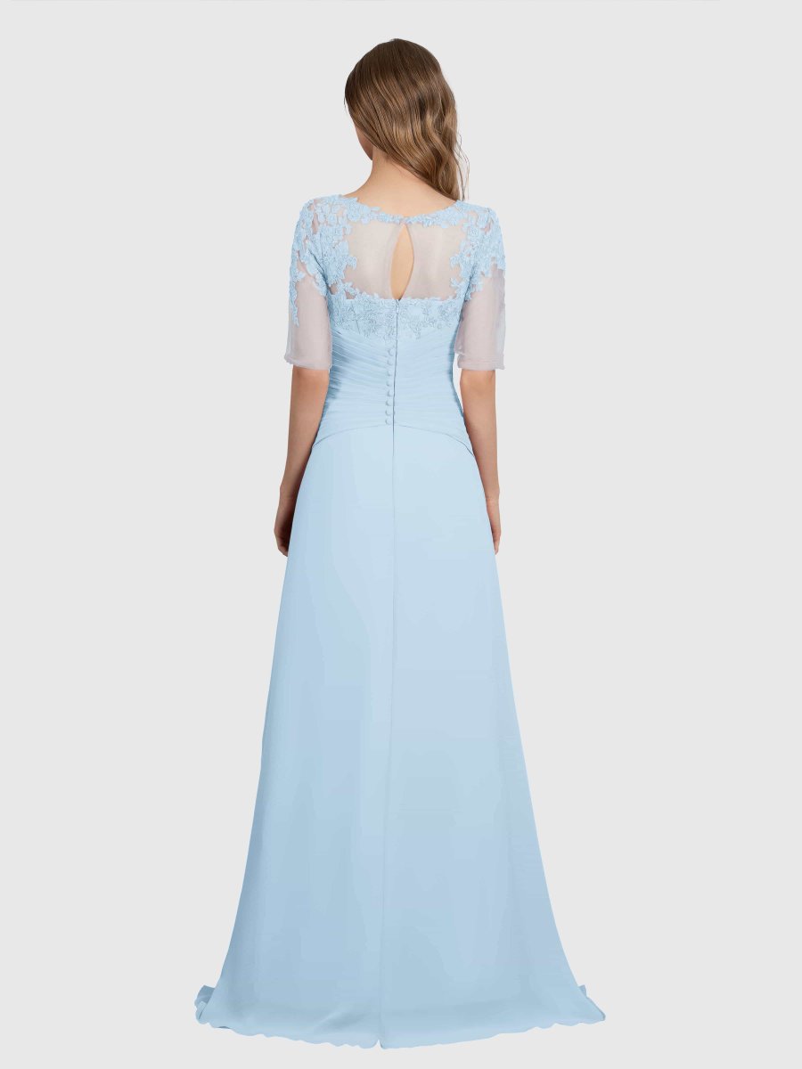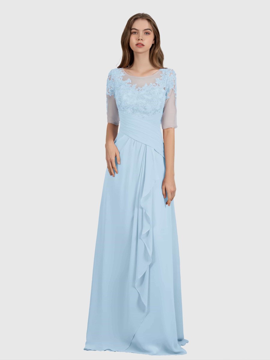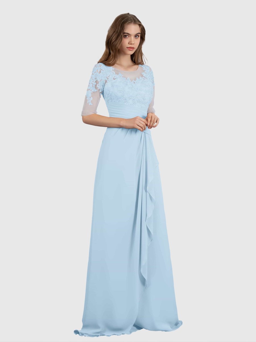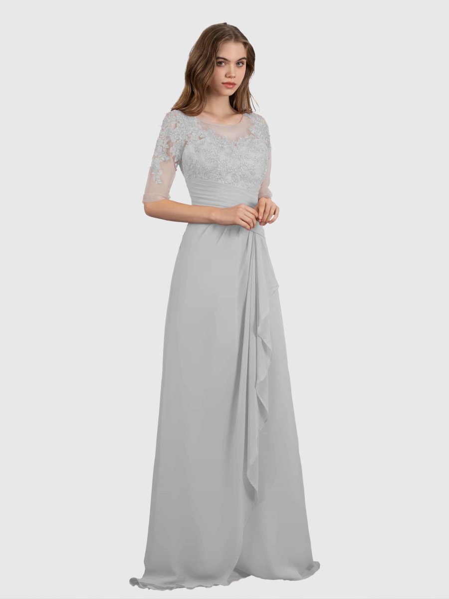 Capturez l’élégance avec la robe de demoiselle d’honneur en mousseline de soie et dentelle à volants Penelope Elegant Illusion de Pomuyoo.fr. Dotée d’un élégant décolleté illusion et de détails de volants exquis, cette robe est une véritable beauté. Fabriqué à partir de tissu en mousseline de haute qualité, il offre à la fois confort et style.