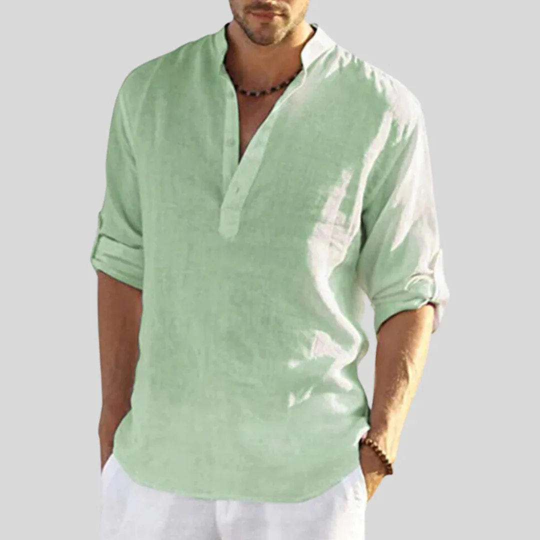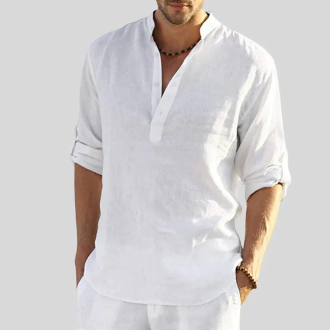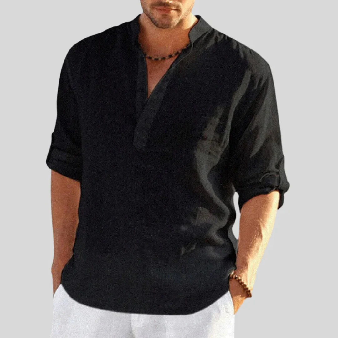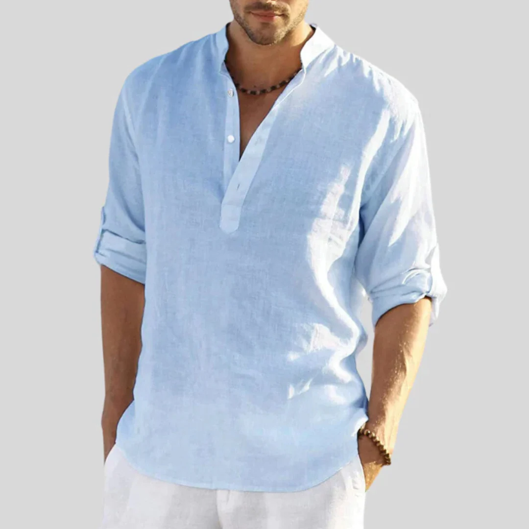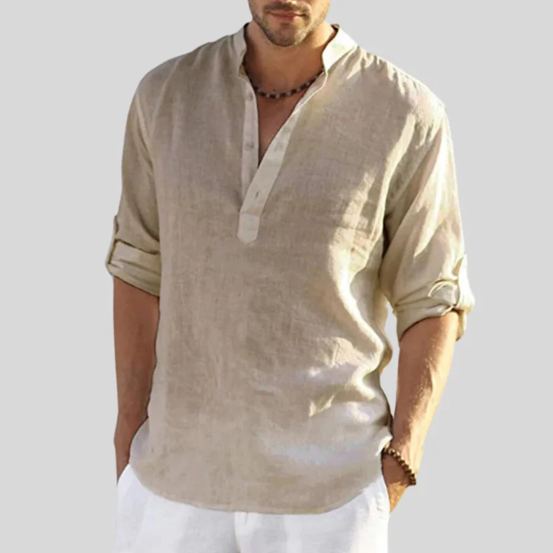 - Détails raffinés : Fermeture à demi-bouton et manches à poignets pour un look élégant.