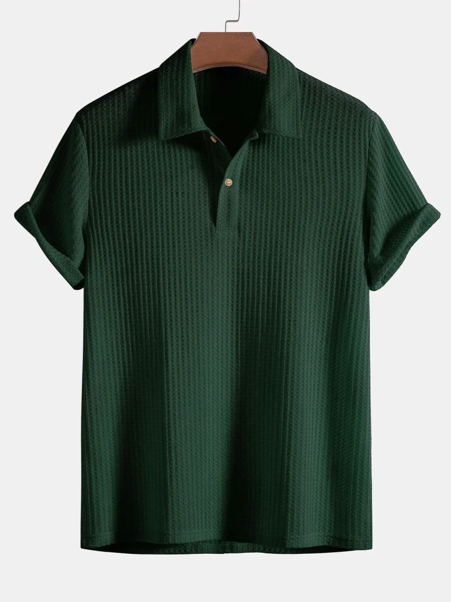 Rehaussez votre look de tous les jours avec le polo Trendy pour hommes, un équilibre parfait entre sophistication et attrait décontracté. cet essentiel à manches courtes est doté d’une fermeture raffinée à demi-bouton qui ajoute une touche raffinée à votre tenue.