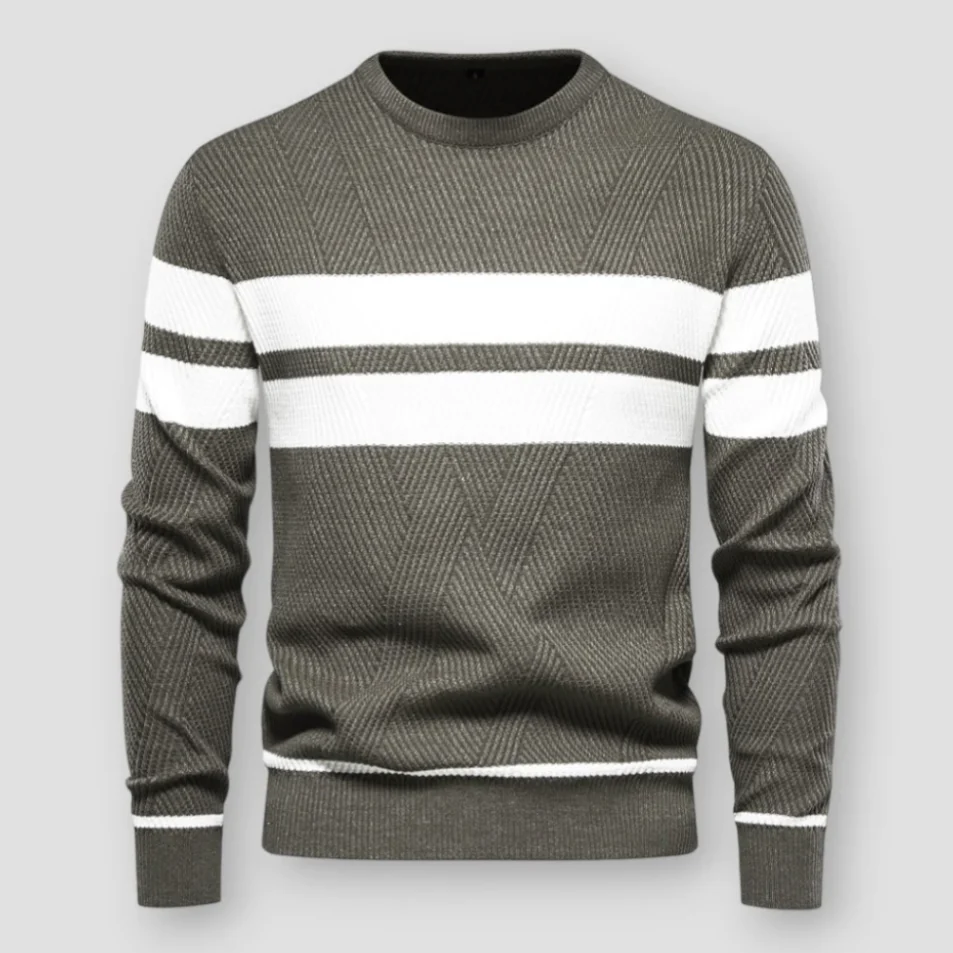 Ce pull à col rond avec rayures contrastées est parfait pour un look moderne et décontracté. Son tissu en maille épaisse assure une chaleur optimale tout en offrant un design tendance et facile à assortir.