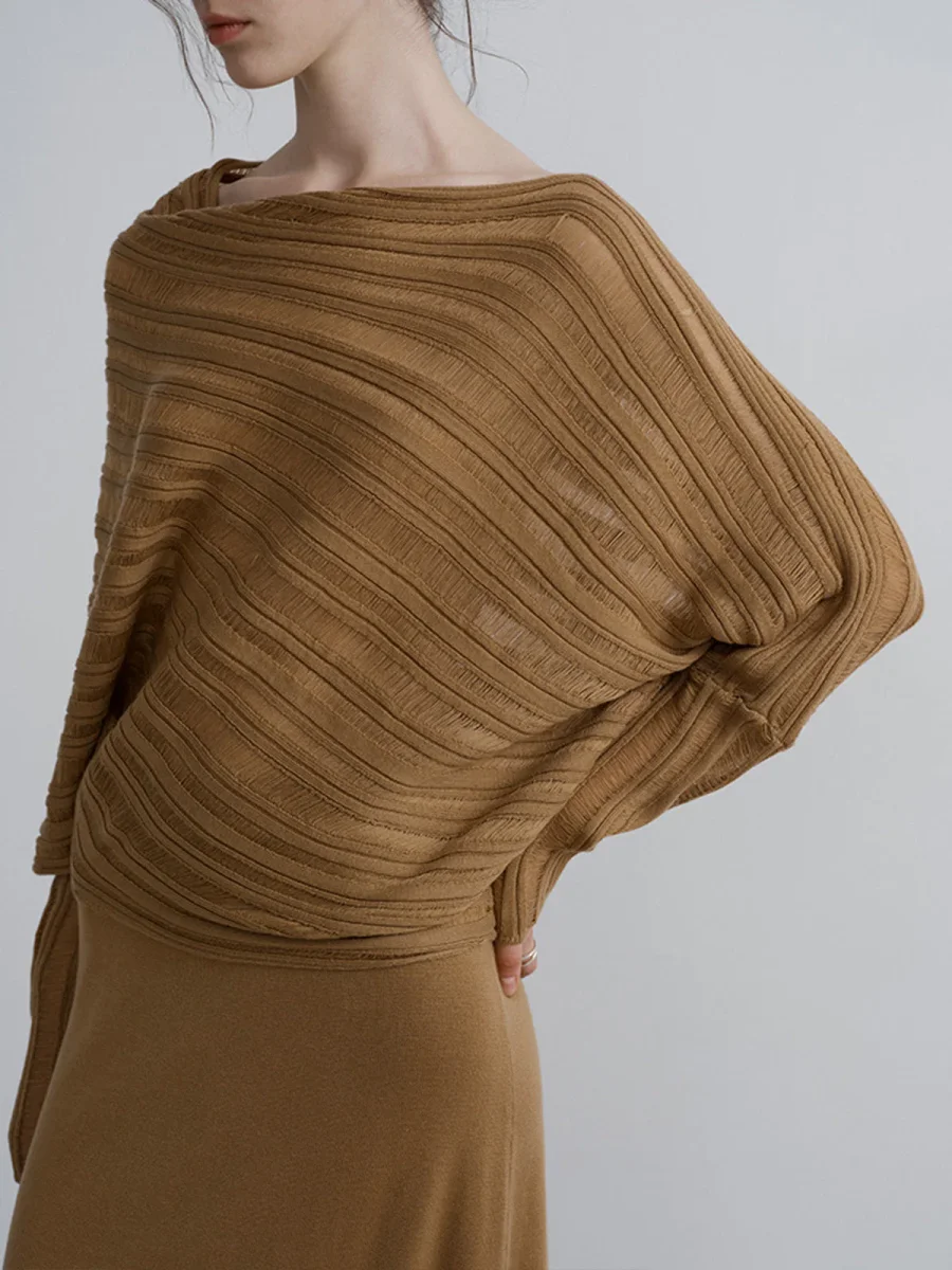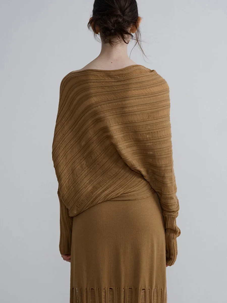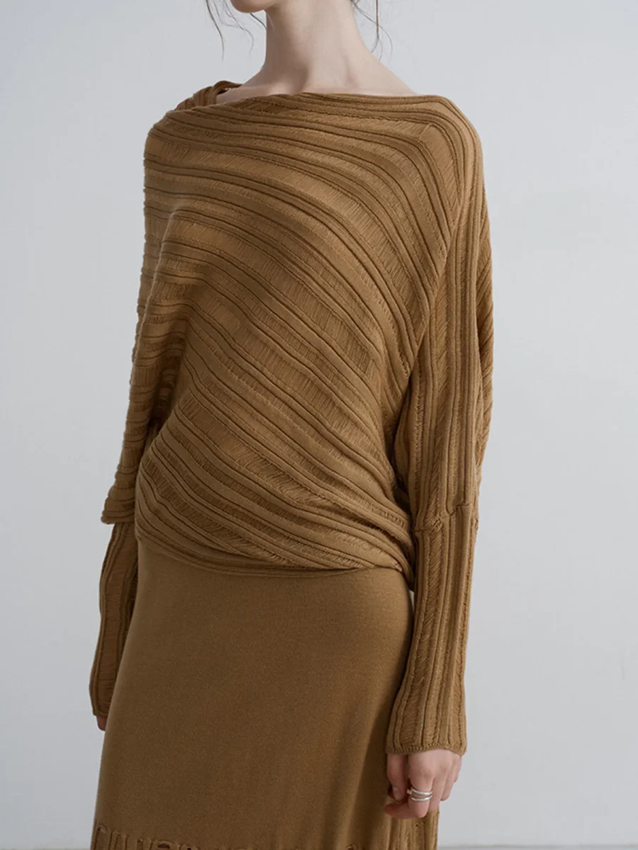 Pull Camel Asymétrique | Col Bateau | Maille Côtelée Minimaliste