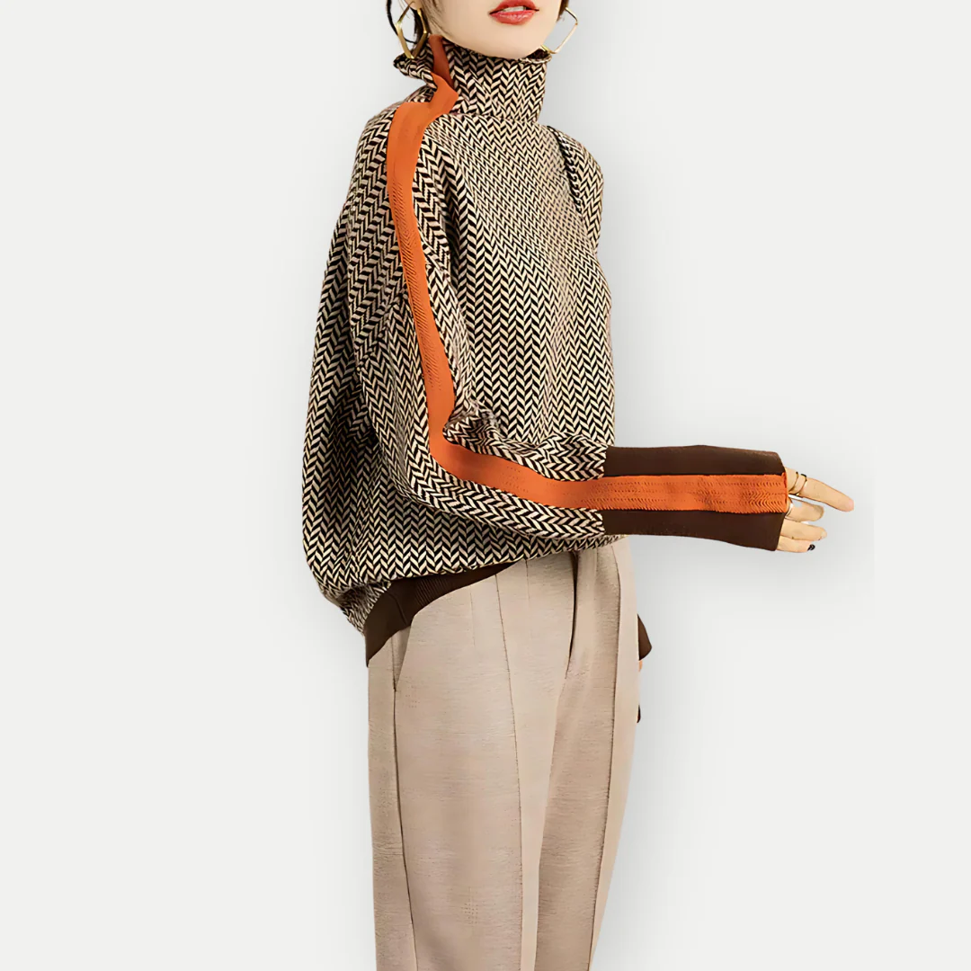 Pull Motif Chevron Moderne | Col Montant et Détails Contrastés