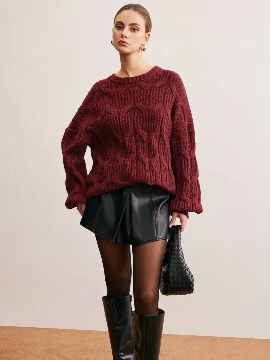 Pull Oversize en Maille & Jupe Simili Cuir | Look Automne | Texturé et Tendance