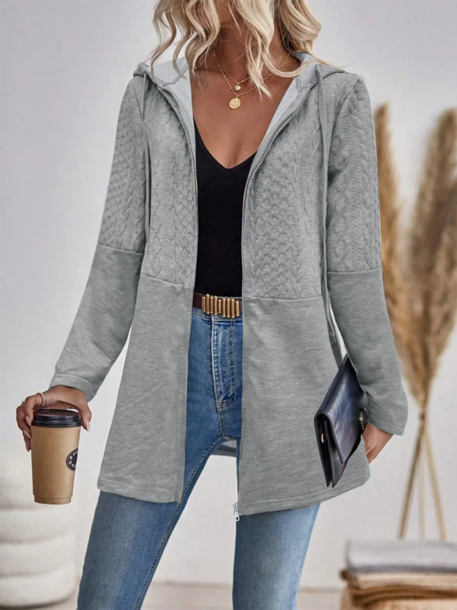 This zip-up hooded jacket offers the perfect blend of sportswear style and casual elegance.