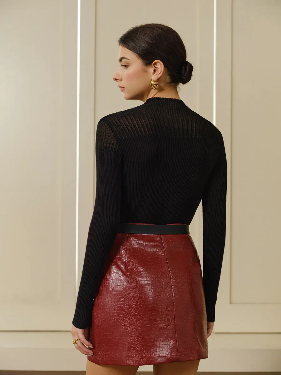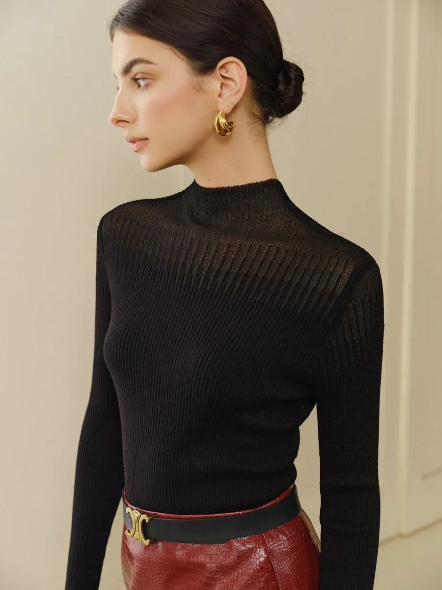 Ribbed Top Black | High Collar | Minimalist Elegance