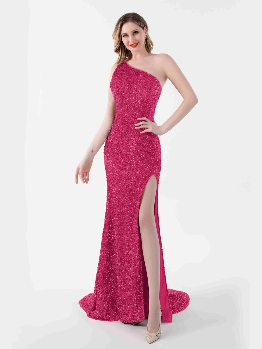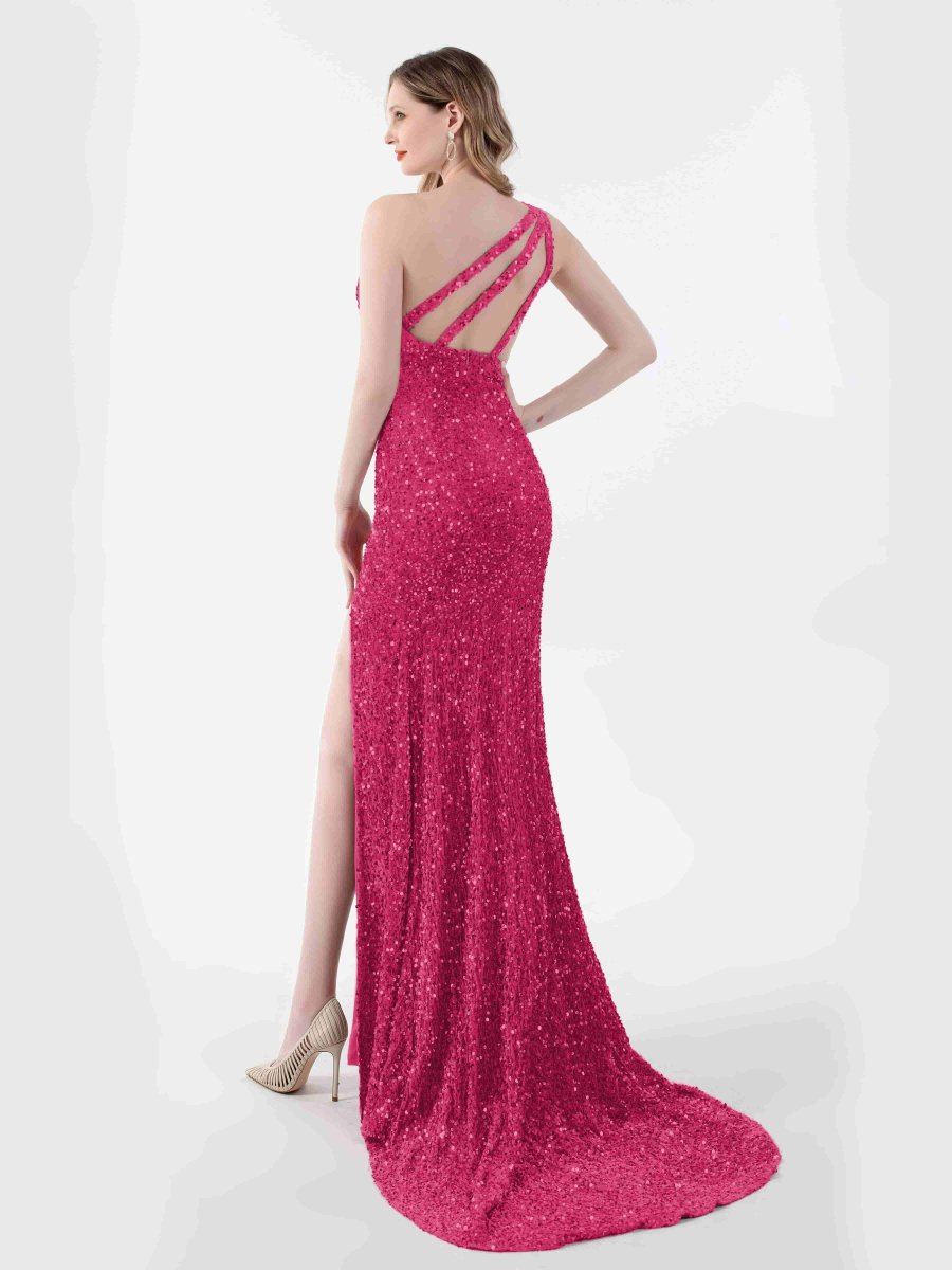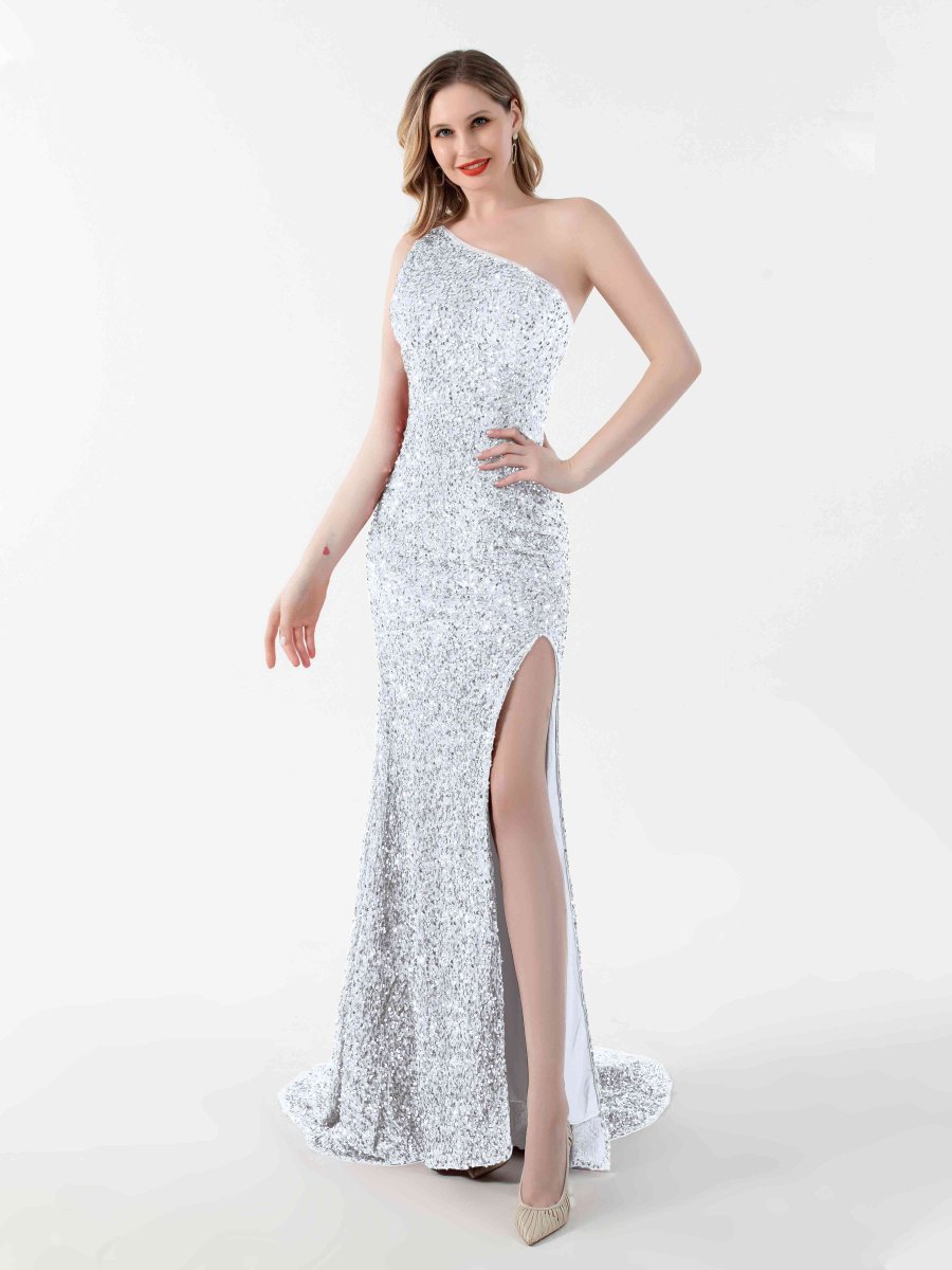 Robe De Soirée En Pailleté À Une Épaule Fente À Jambe Angelica