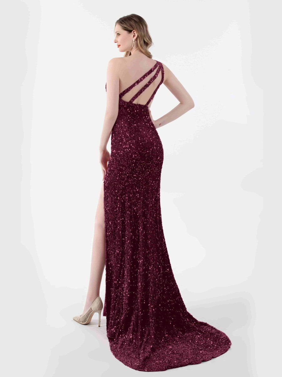 Riley Robes À Paillettes En Velours Une Épaule Sirène Train De Balayage