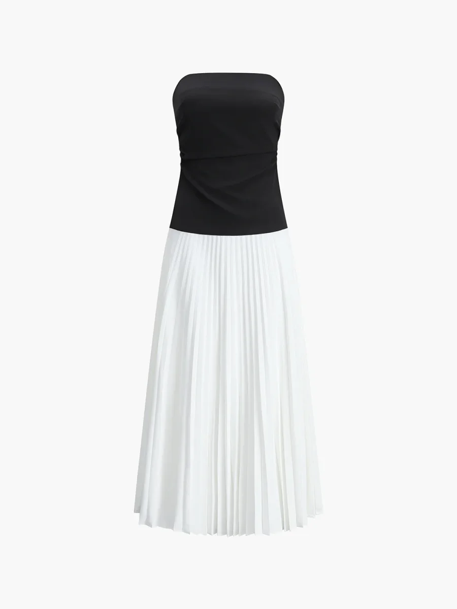 • Design : Robe bustier bicolore avec jupe plissée fluide