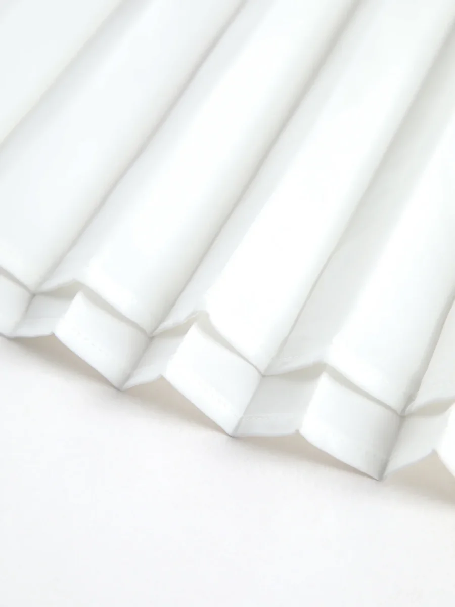 • Détails : Haut noir structuré, jupe blanche plissée longueur cheville