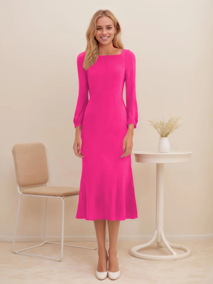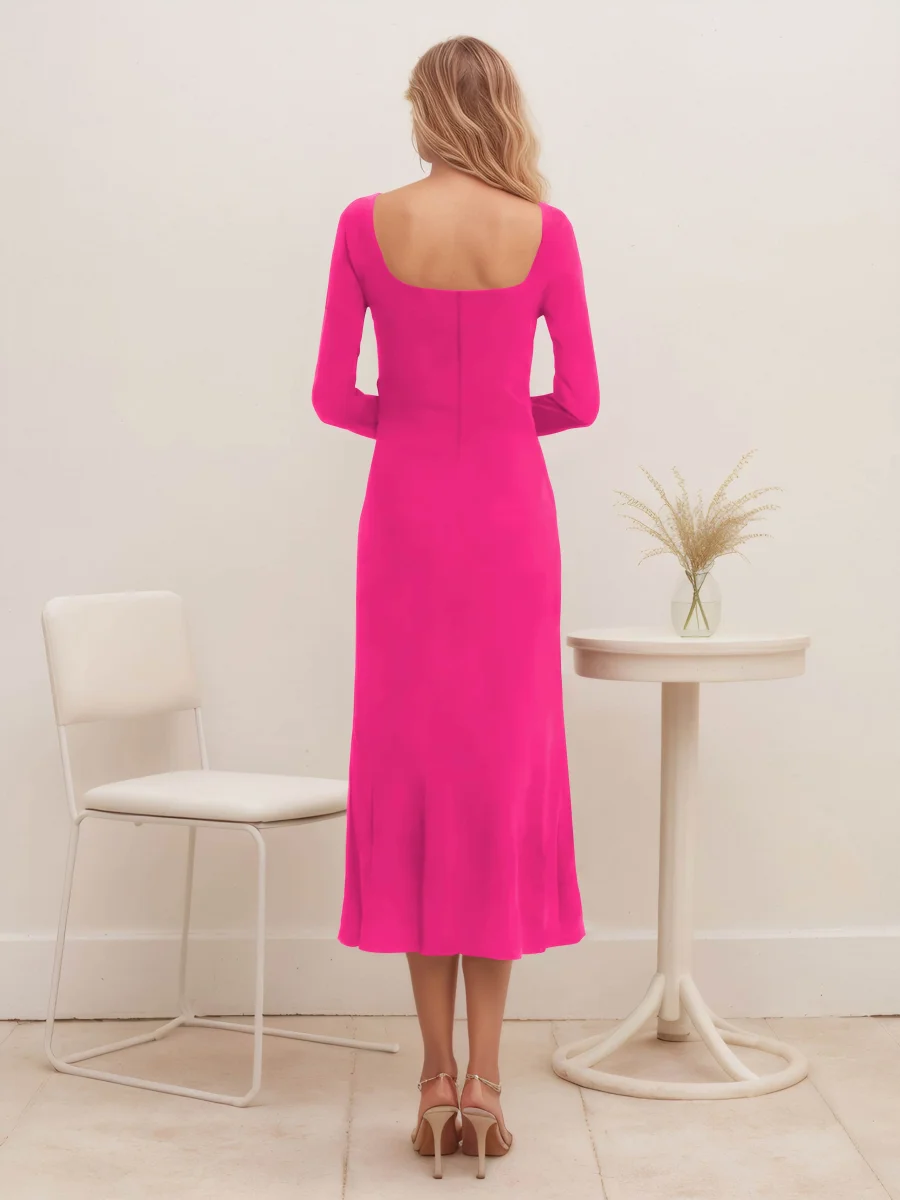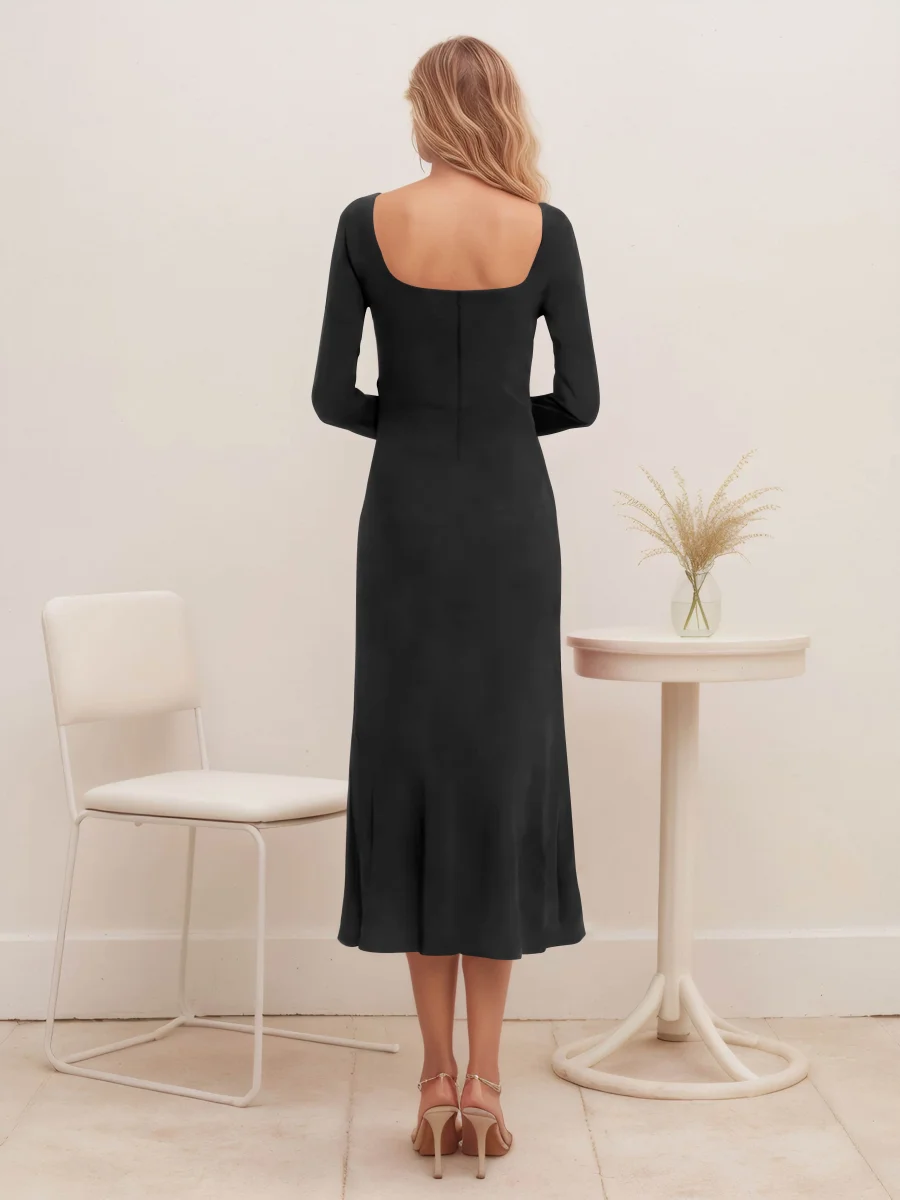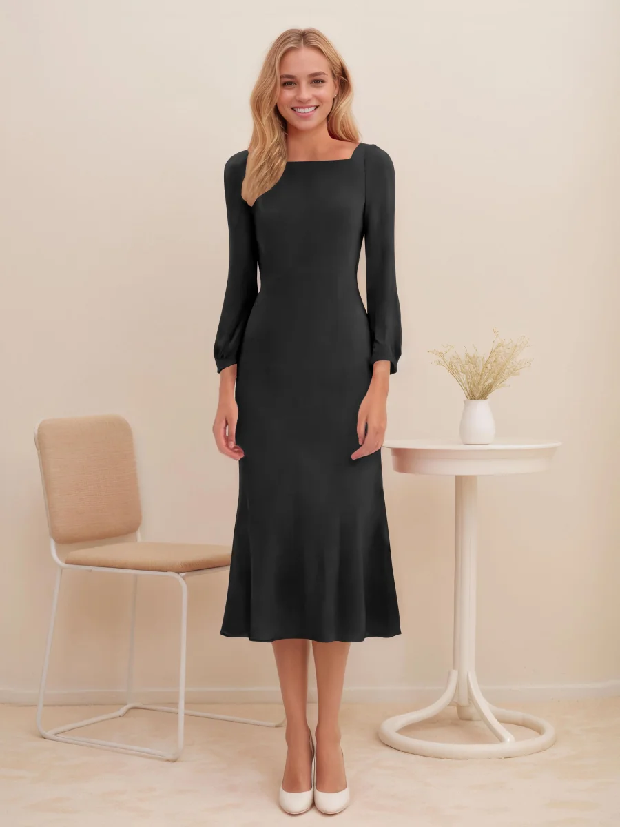 Robe De Soirée À Midi Carré Manches Longues Liberty