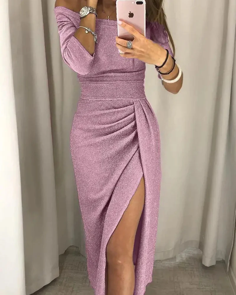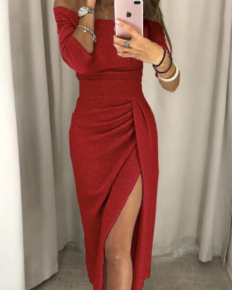 Élégance et Séduction en Toute Occasion Mettez en valeur votre silhouette avec cette magnifique robe qui allie féminité et sophistication. Son design off-shoulder sublime le décolleté, tandis que sa coupe ajustée à la taille crée une allure élégante et flatteuse. Le détail des plis et la fente sur la jambe apportent une touche de glamour […]