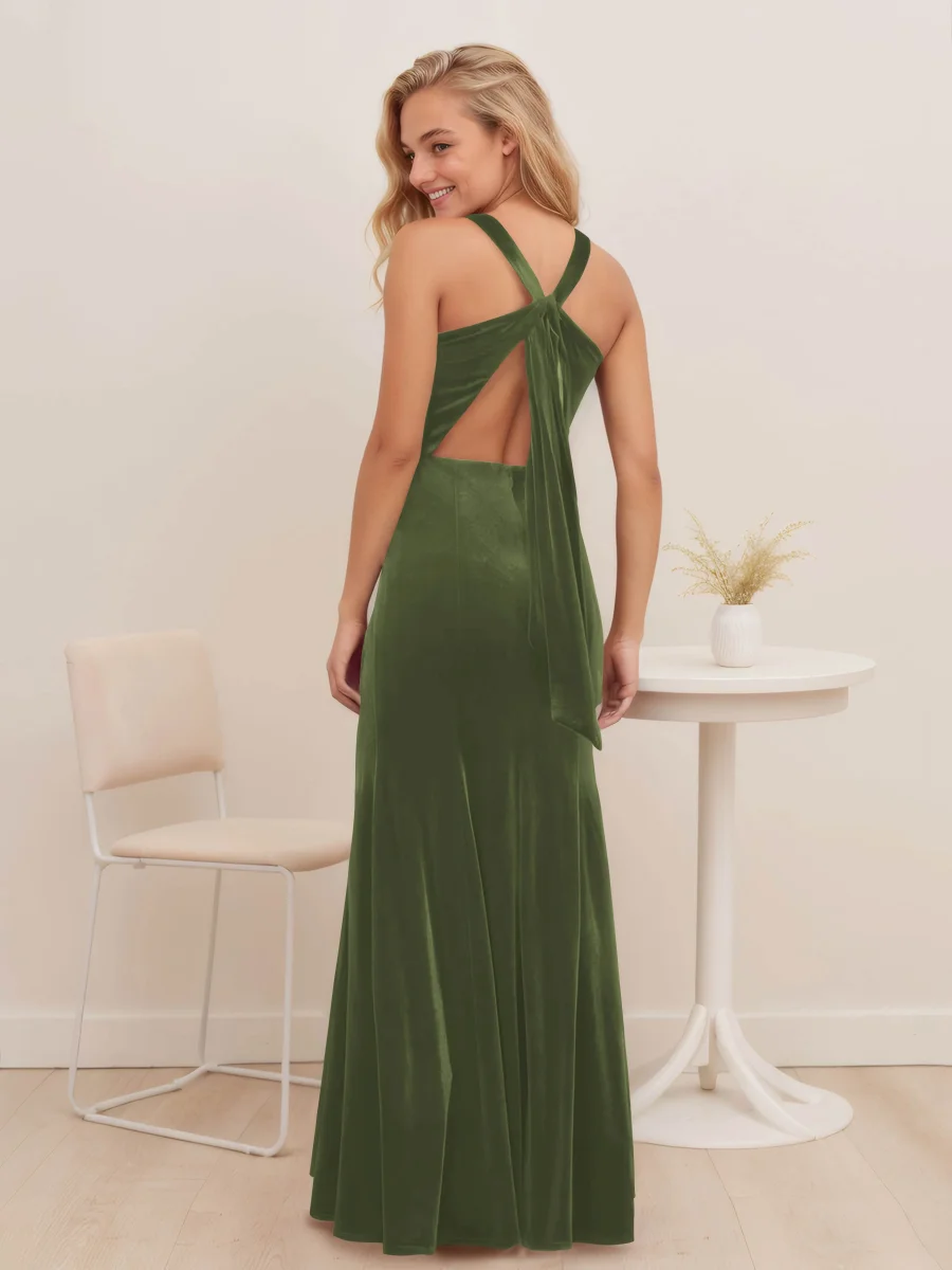 Robe De Soirée En Velours À Licou Fente À Jambe Longueur Au Sol Charley