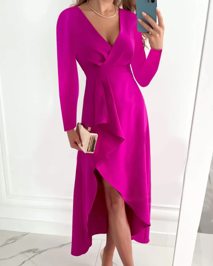 Entrez dans la sophistication avec cette robe cache-cœur à col en V profond pour femme. Conçue avec une longueur midi flatteuse et une silhouette enveloppante élégante, cette robe met en valeur votre beauté naturelle tout en offrant un look tendance et raffiné.