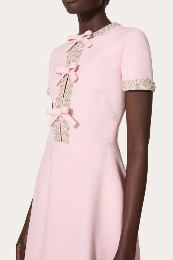 • Design : Rose poudré uni avec détails nœuds décoratifs ornés de perles et strass