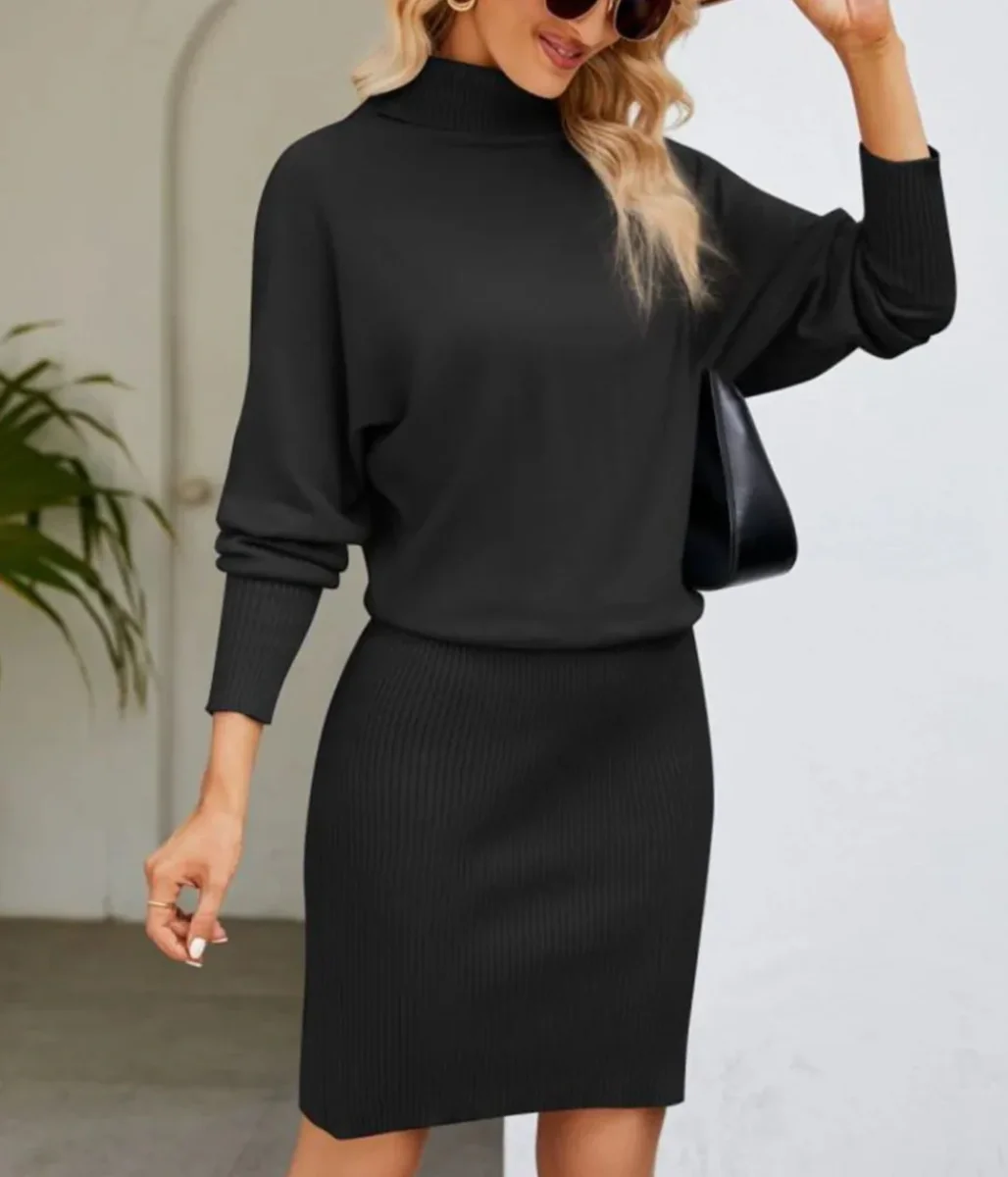 Améliorez votre garde-robe avec cette robe pull à col roulé. Un mélange parfait de chaleur et d’élégance, conçu pour vous faire remarquer sans effort !