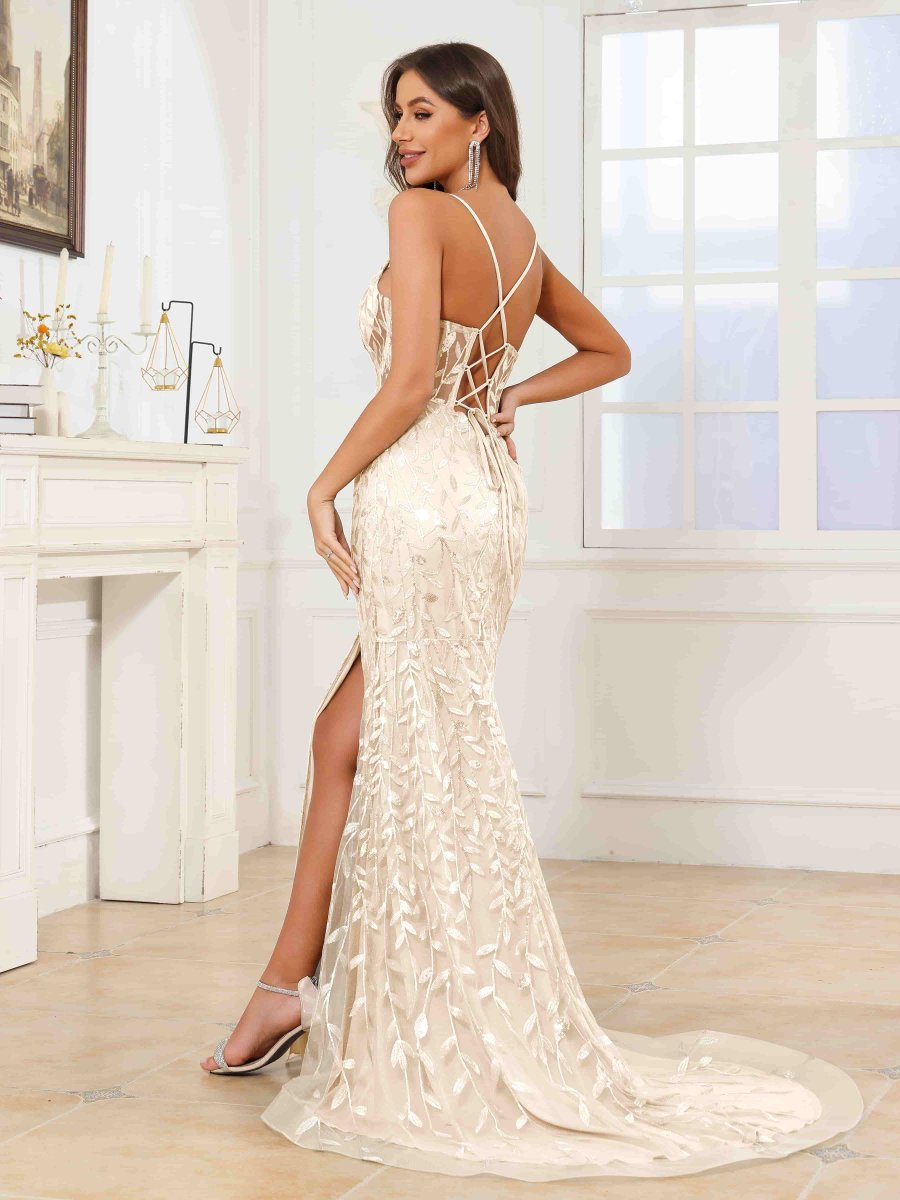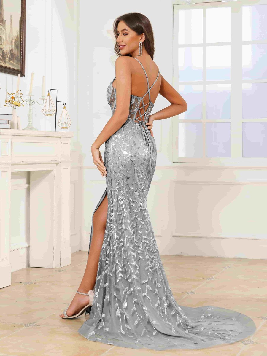 Robes De Bal En Pailleté À Trompette Corset Fente À Jambe Penny
