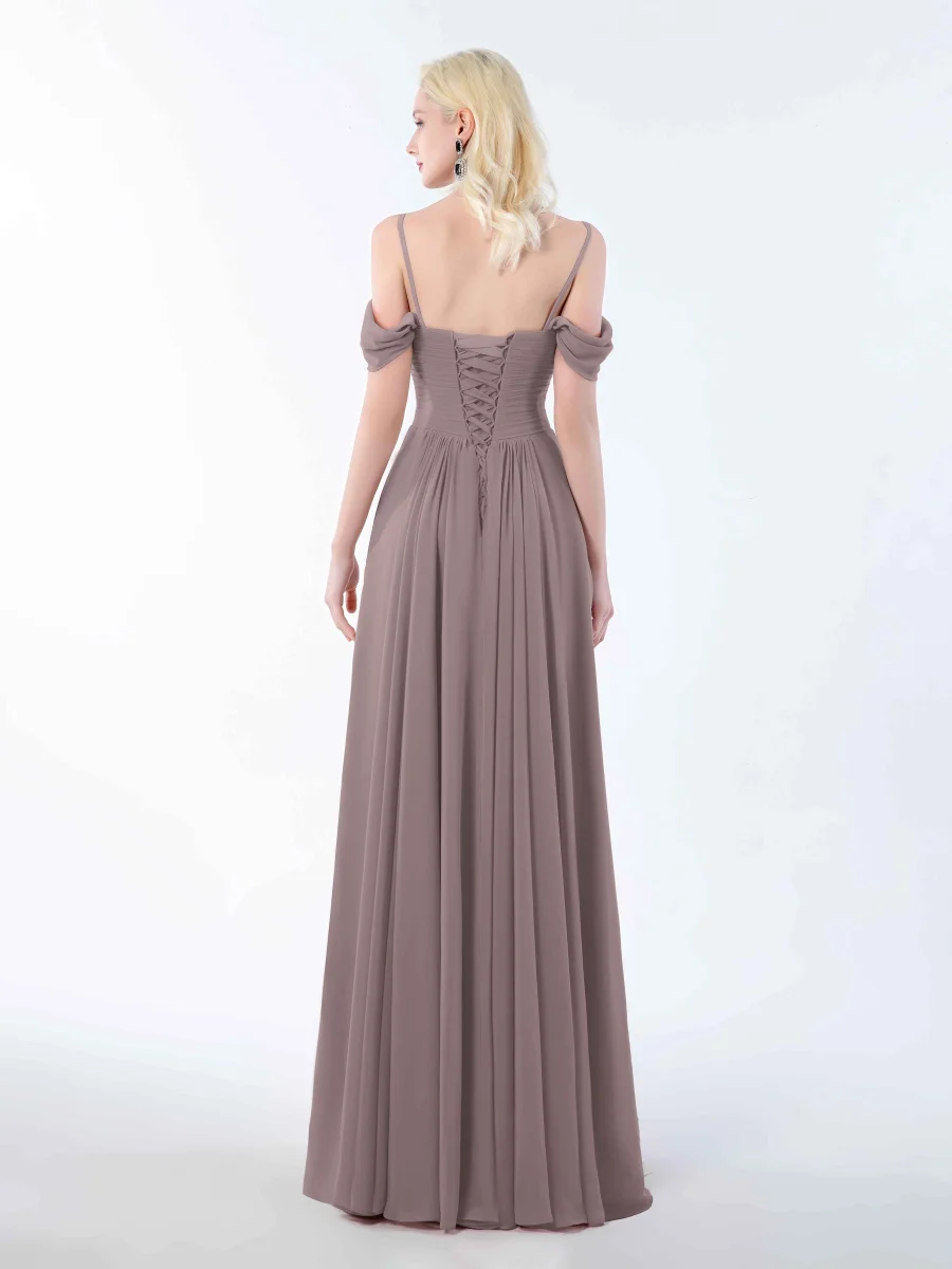 Préparez-vous à impressionner avec les élégantes robes. Ces robes présentent de délicates bretelles spaghetti et des fronces flatteuses, créant un look époustouflant. Confectionné en mousseline fluide, il offre une coupe confortable. Parfaites pour les demoiselles d’honneur, ces robes rehausseront votre mariage grâce à leur design tendance.