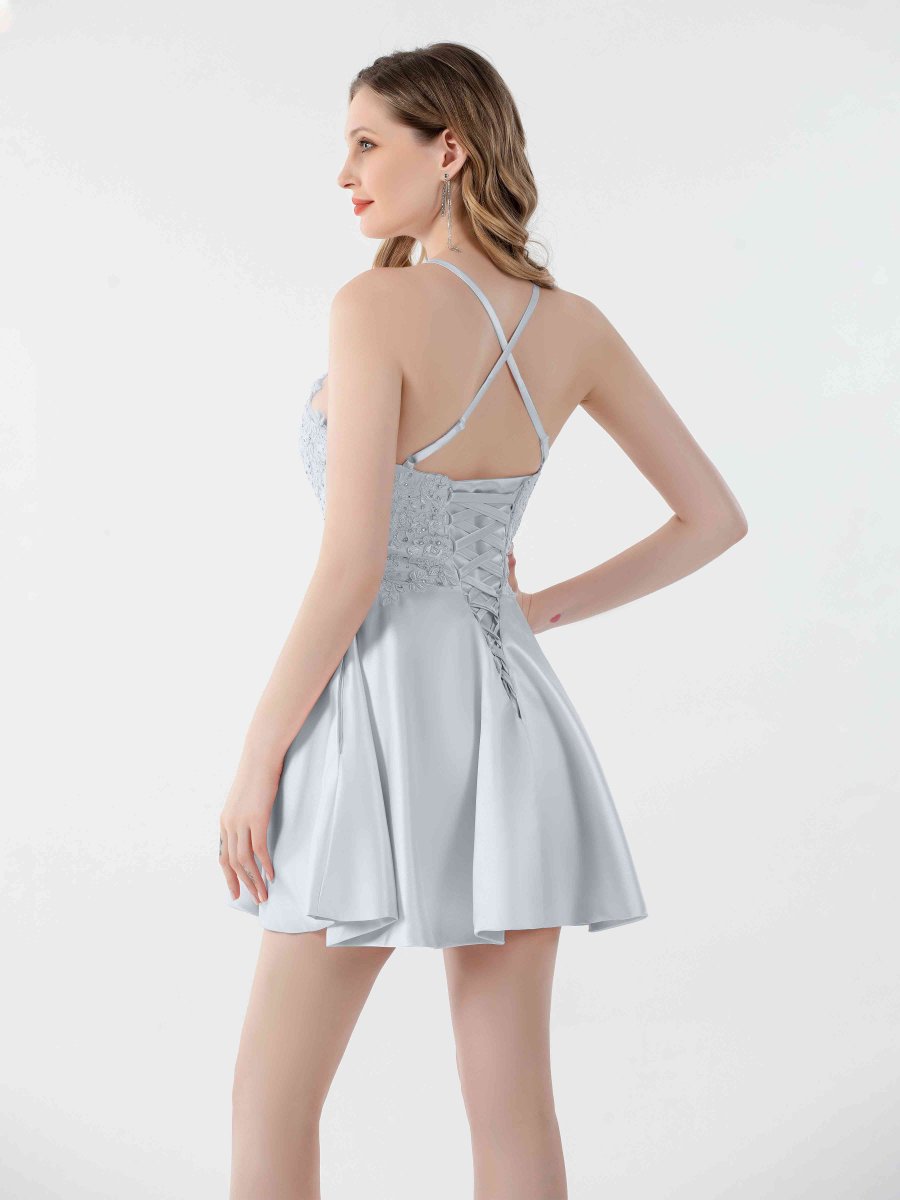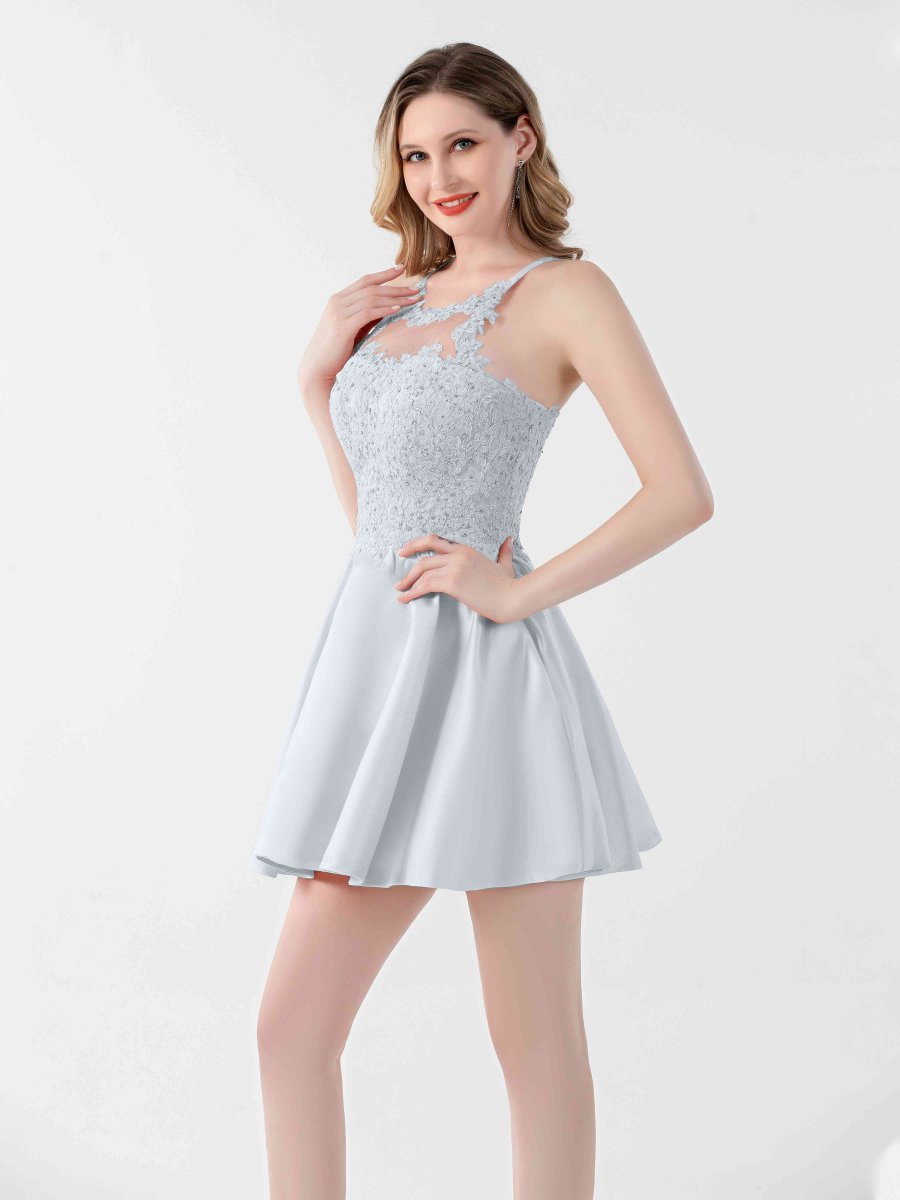 Exprimez l’élégance avec les mini robes de soirée en satin de Mollevers. Ces robes allient sophistication et allure avec leur design sans manches et leurs appliques en dentelle illusion ornées de perles délicates. Fabriqués à partir de tissu satiné de haute qualité, ils offrent une sensation luxueuse et une silhouette flatteuse.