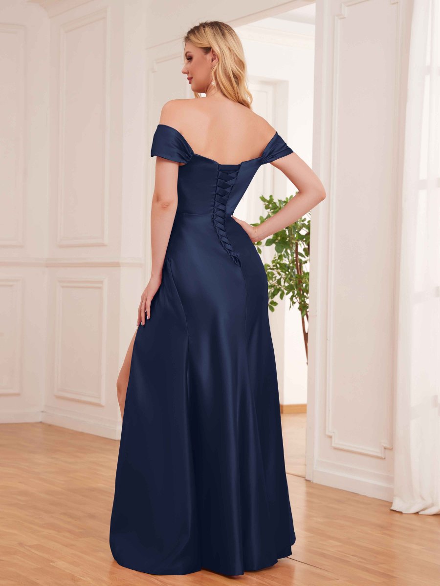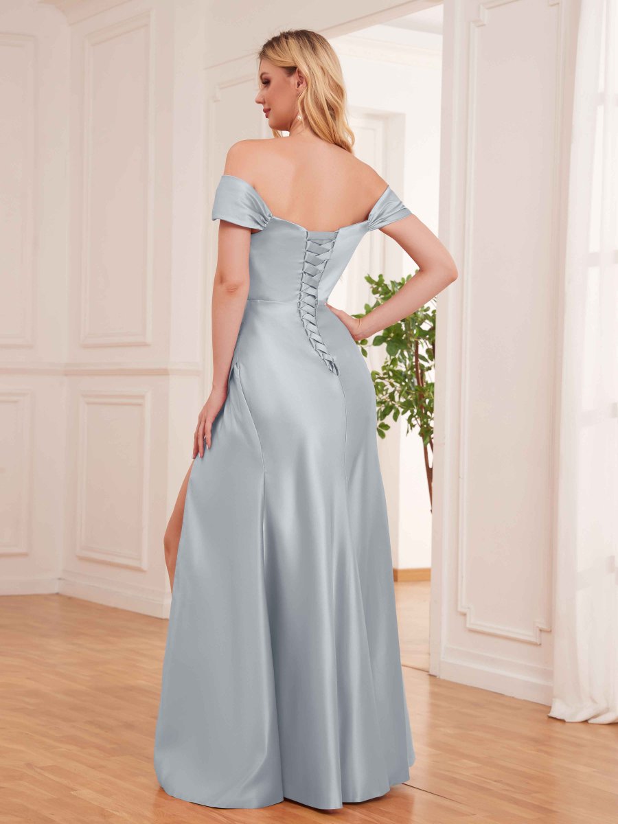 Robes En Satin À Épaules Dénudées Et Fente À Jambe Longueur Au Sol Esther