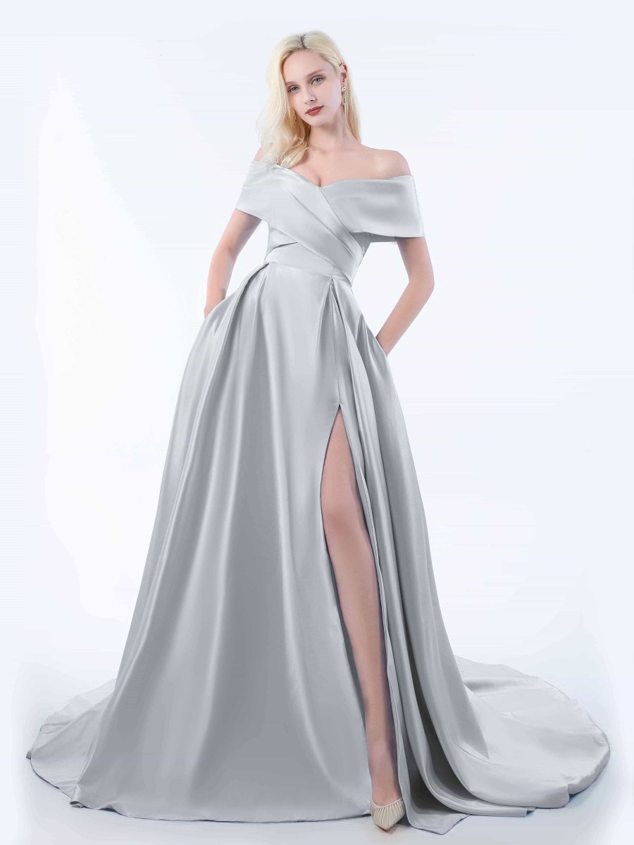 Soyez le premier à laisser votre avis sur “Robes En Satin À Épaules Dénudées Et Traîne De Balayage Violet”