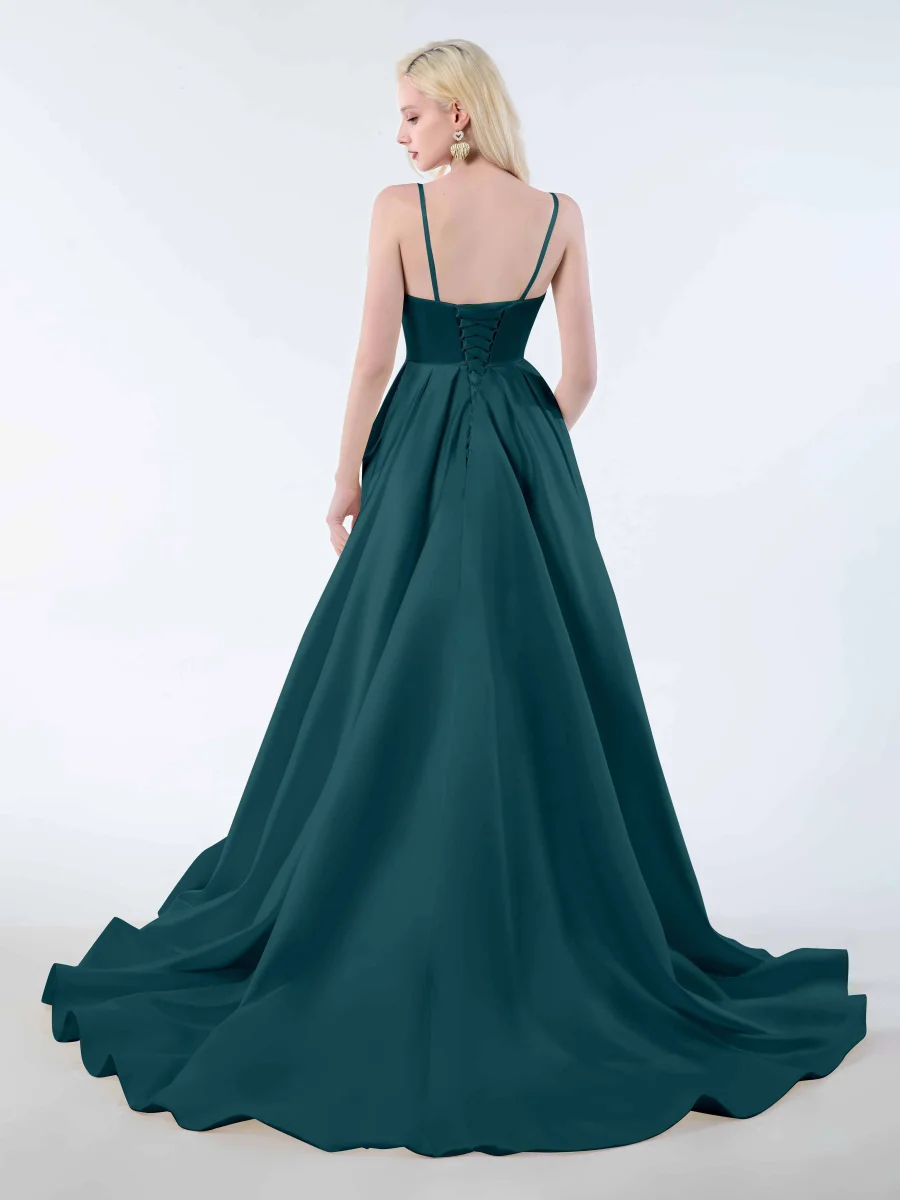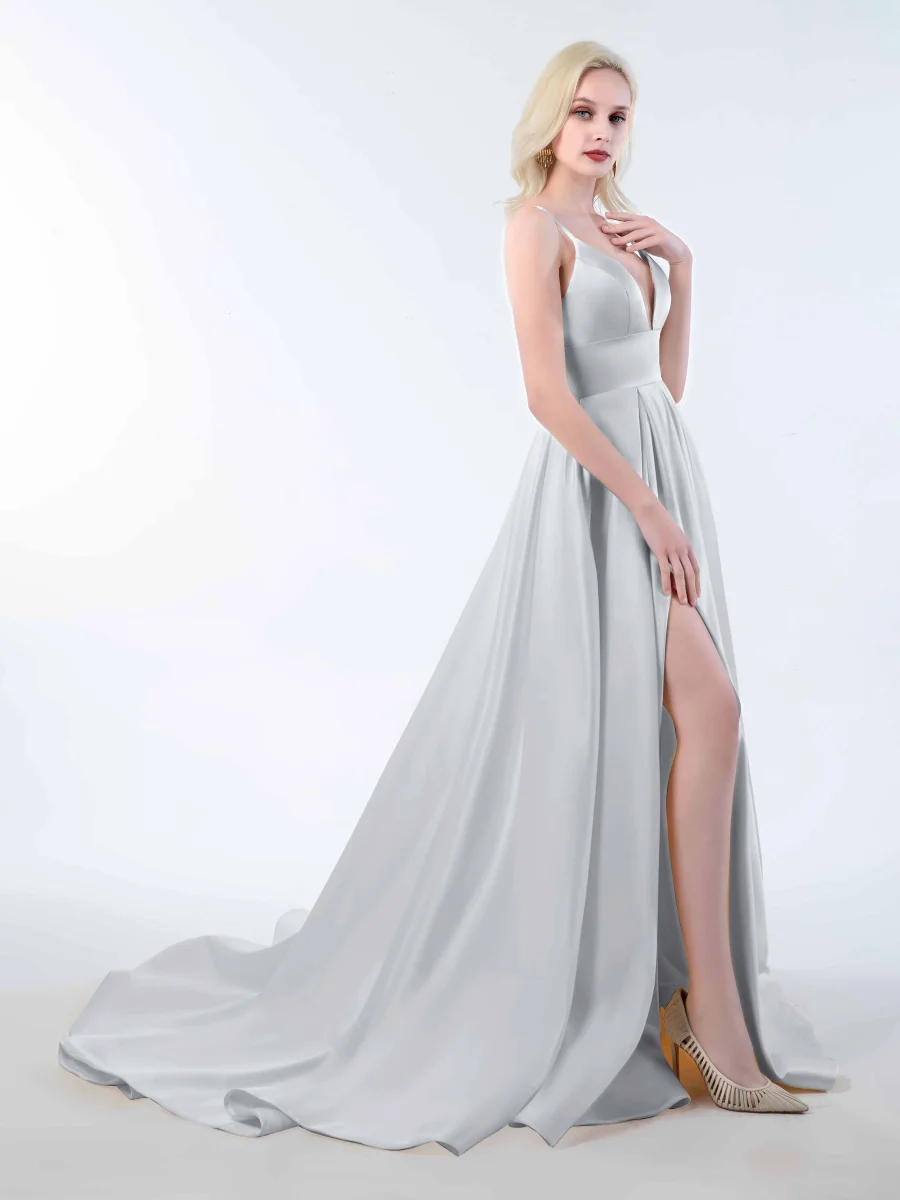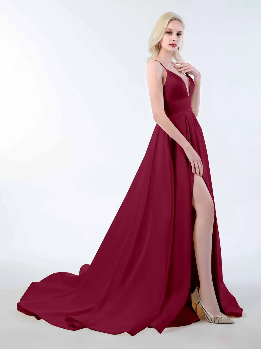 Rayonnez de confiance et d’allure avec les robes. Ces superbes robes présentent un décolleté en V profond, de délicates bretelles spaghetti et une fente sensuelle jusqu’aux cuisses. La longue traîne ajoute un élément d’élégance et de drame à votre look. Fabriquées à partir de tissu satiné de haute qualité, ces robes offrent à la fois style.