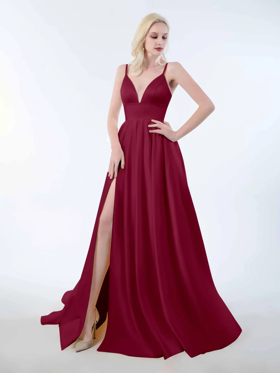 Soyez le premier à laisser votre avis sur “Robes En Satin À Fente À Jambe Bretelles Spaghetti Et Col En V Amy”