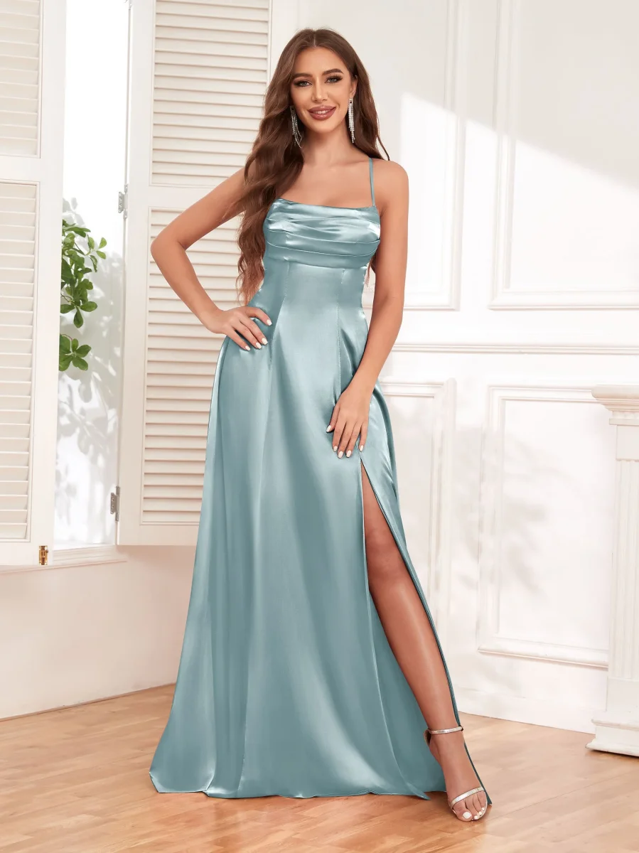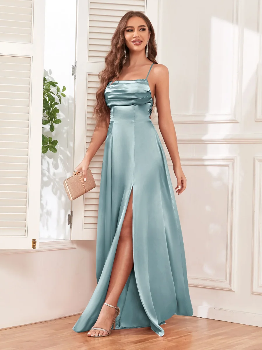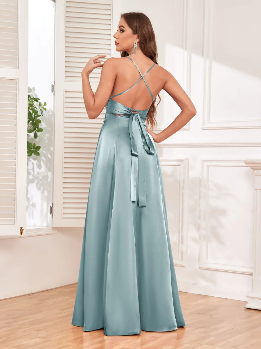 Brillez de mille feux avec la robe en satin éclatante de Pomuyoo.fr, dotée de fines bretelles et d’un nœud dans le dos. Les bretelles fines ajoutent une touche délicate, tandis que le nœud au dos ajoute une touche de féminité. Cette robe est parfaite pour celles qui veulent respirer l’élégance et la grâce lors de toute occasion formelle.