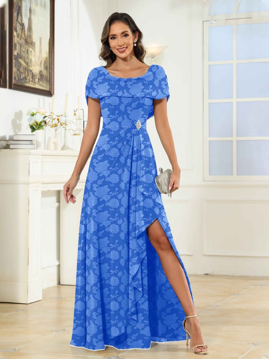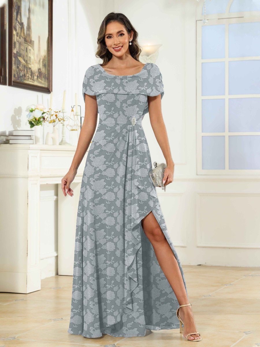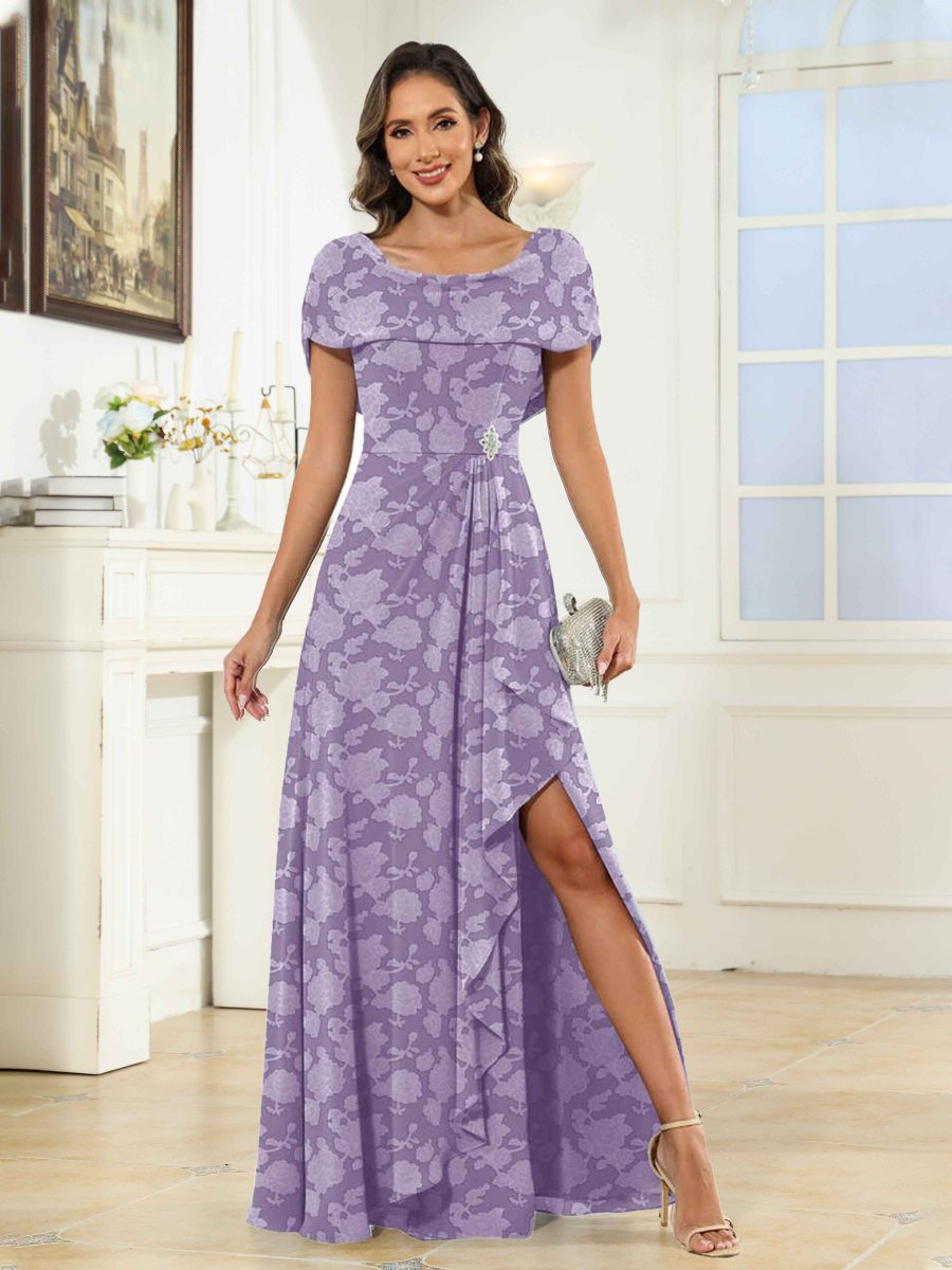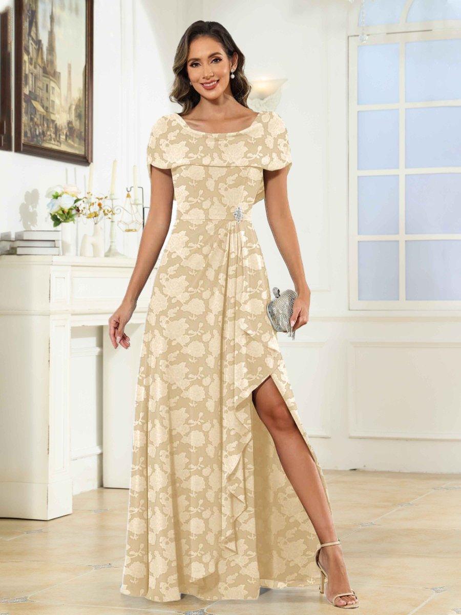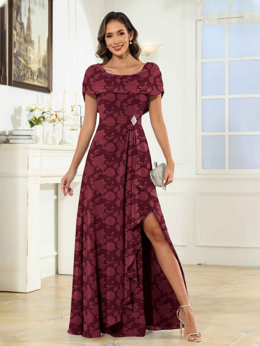 Robes Mère De La Mariée À Col Bénitier Perles Dentelle Jacquard Fleur