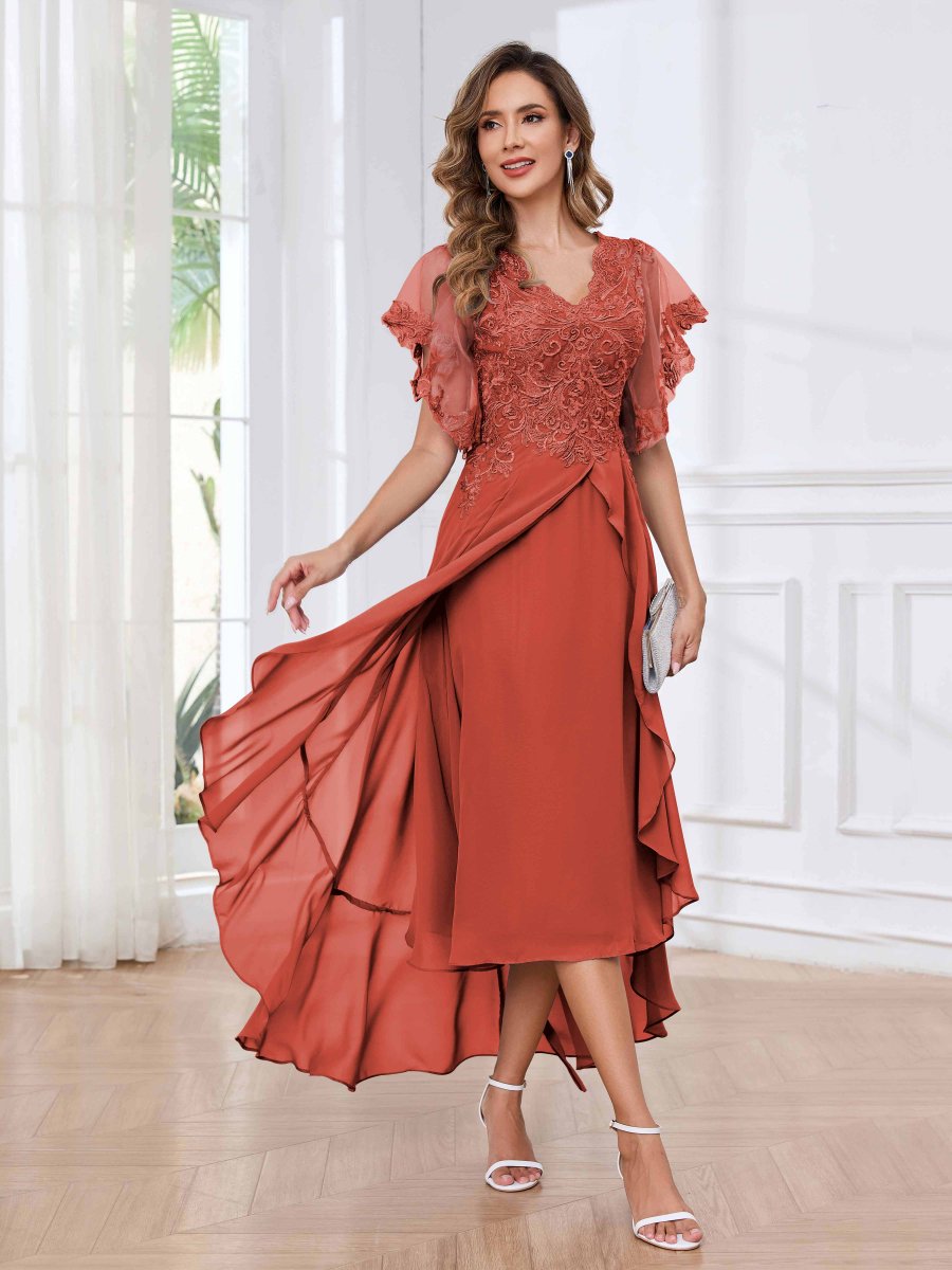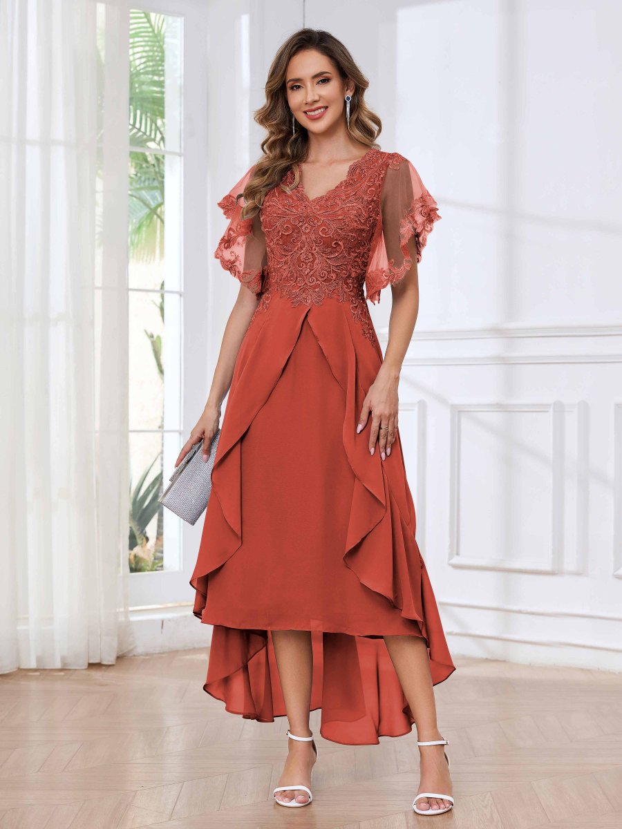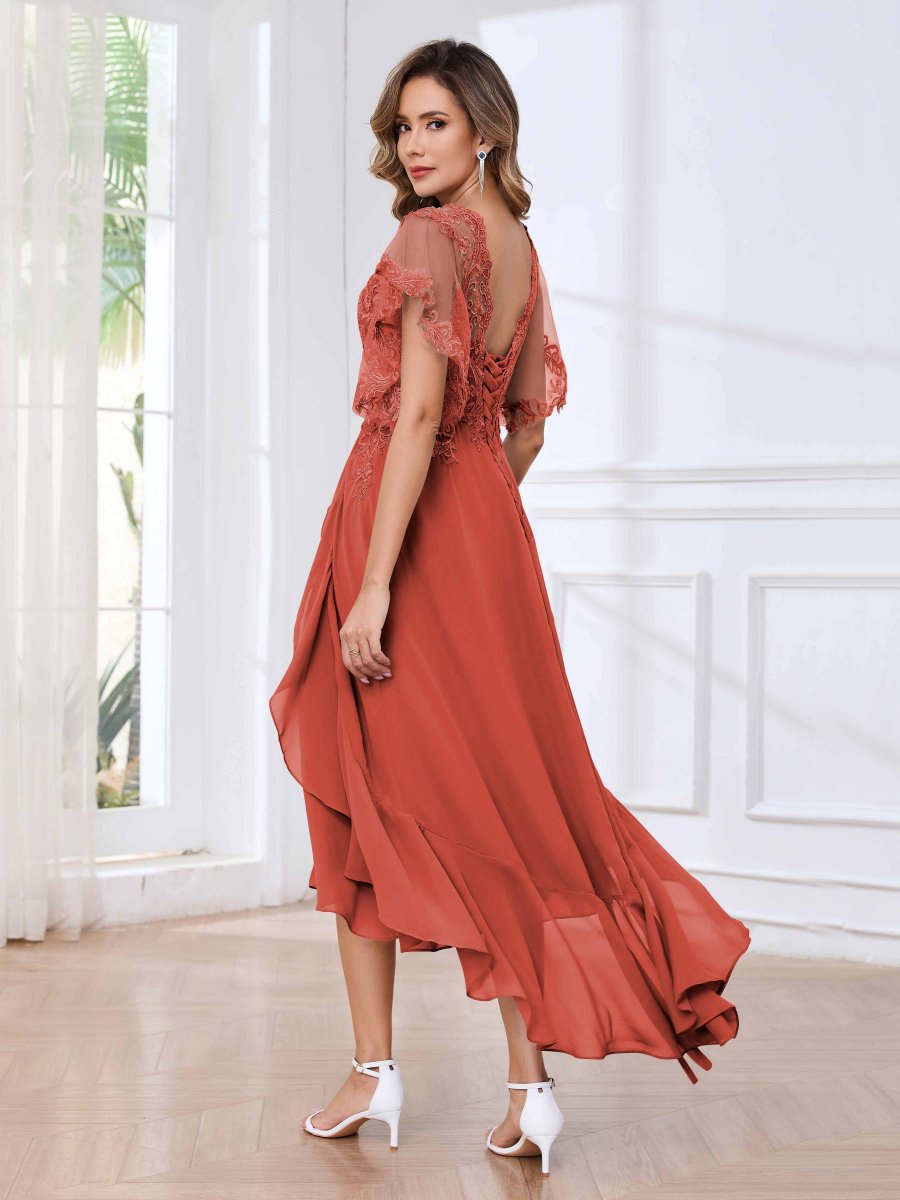 Robes Mère De La Mariée À Dentelle Appliqués Asymétrique Volants Sasha