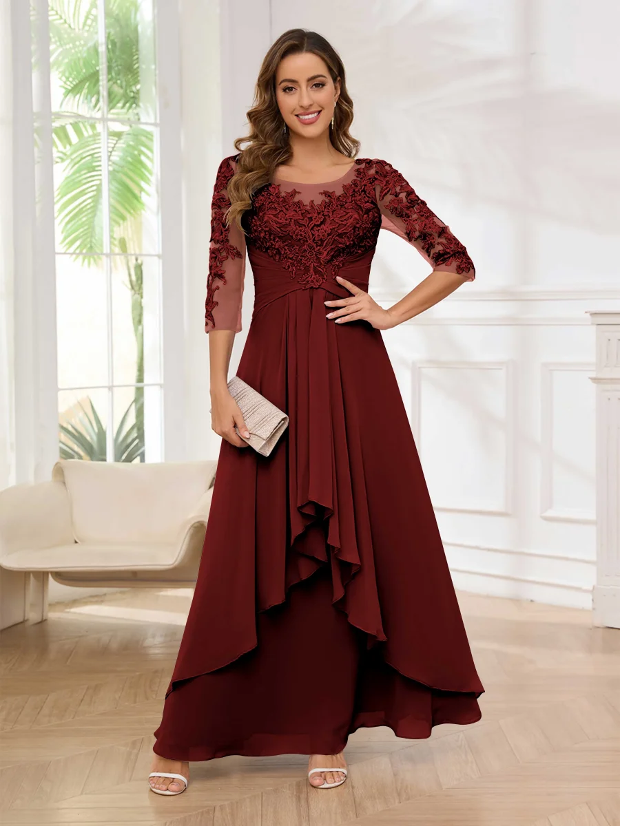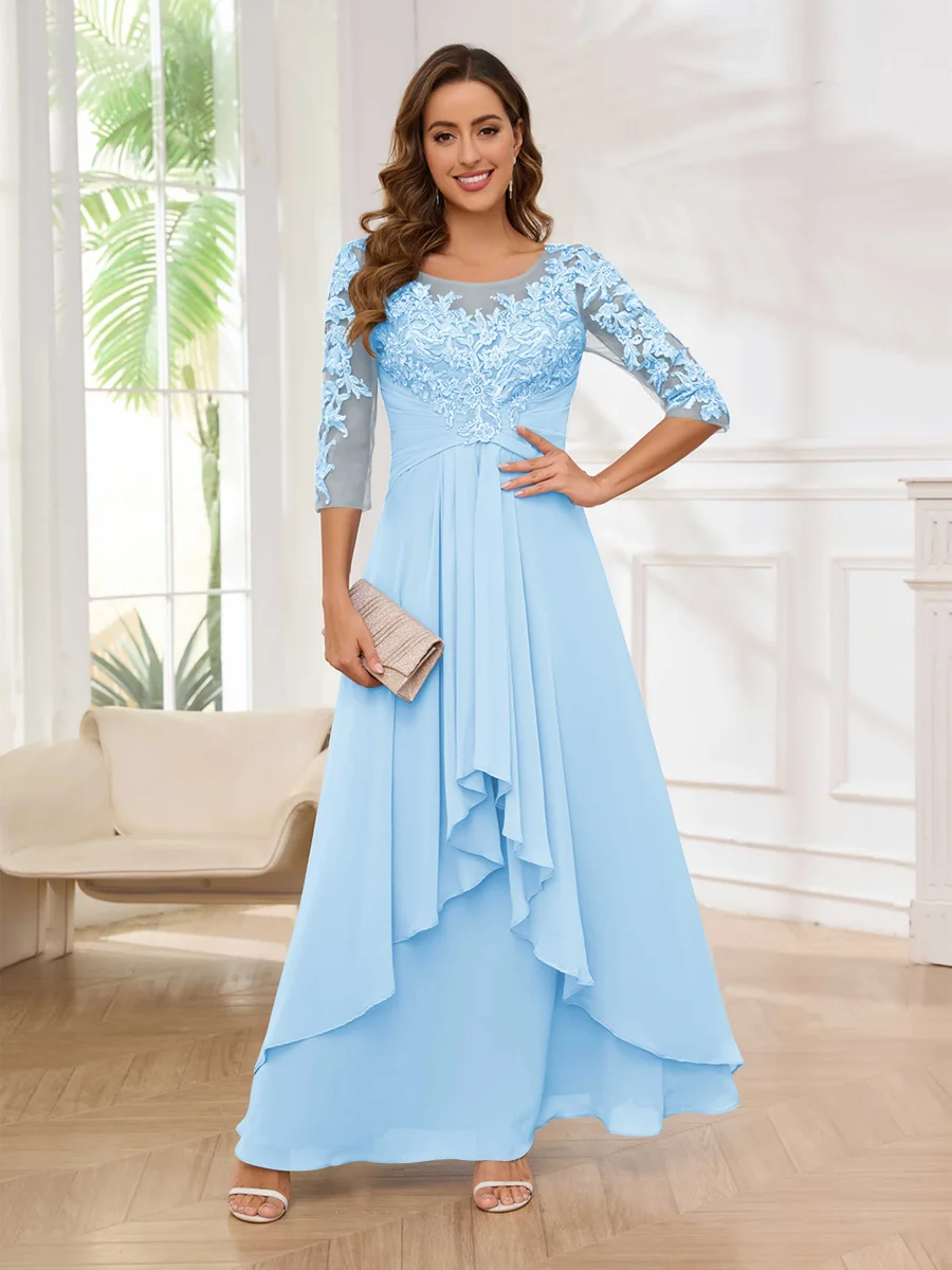 Robes Mère De La Mariée À Dentelle Appliqués Ruché Longueur Au Sol Emely
