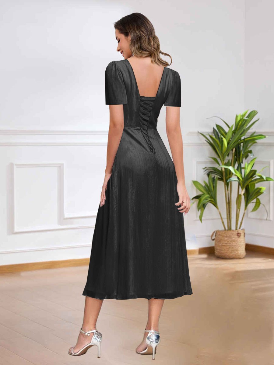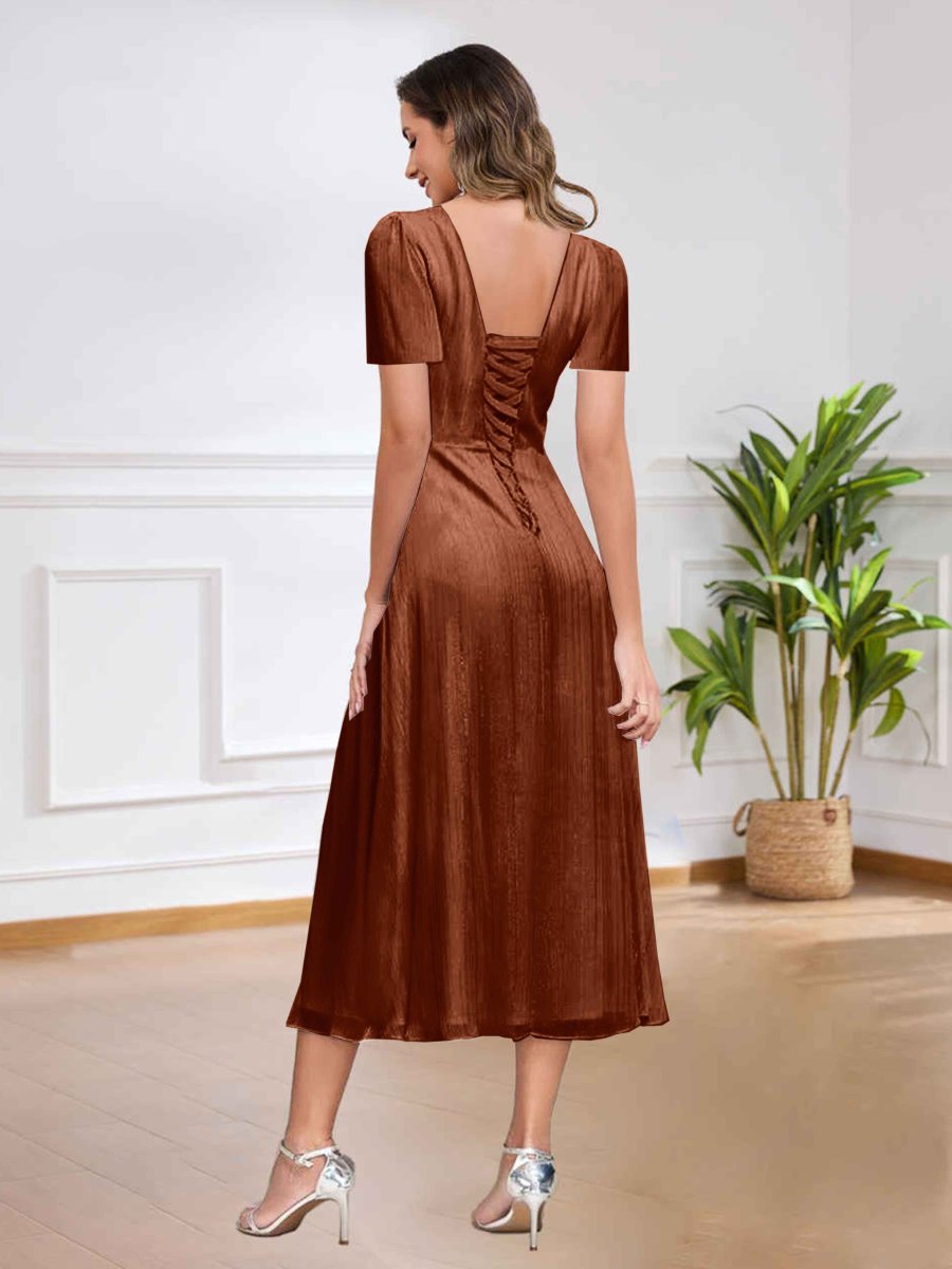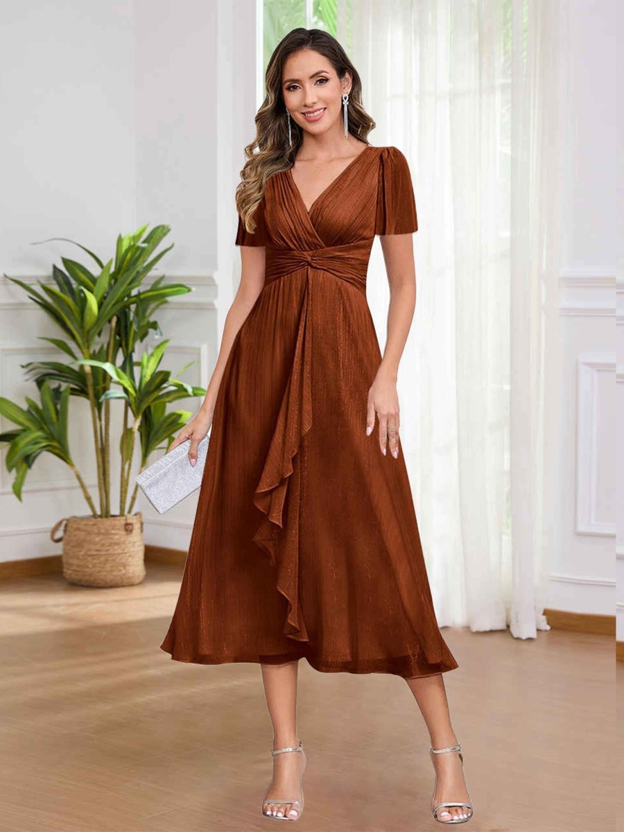 Robes D’Invitées De Mariage En Velours À Longueur Du Thé Col V Alejandra