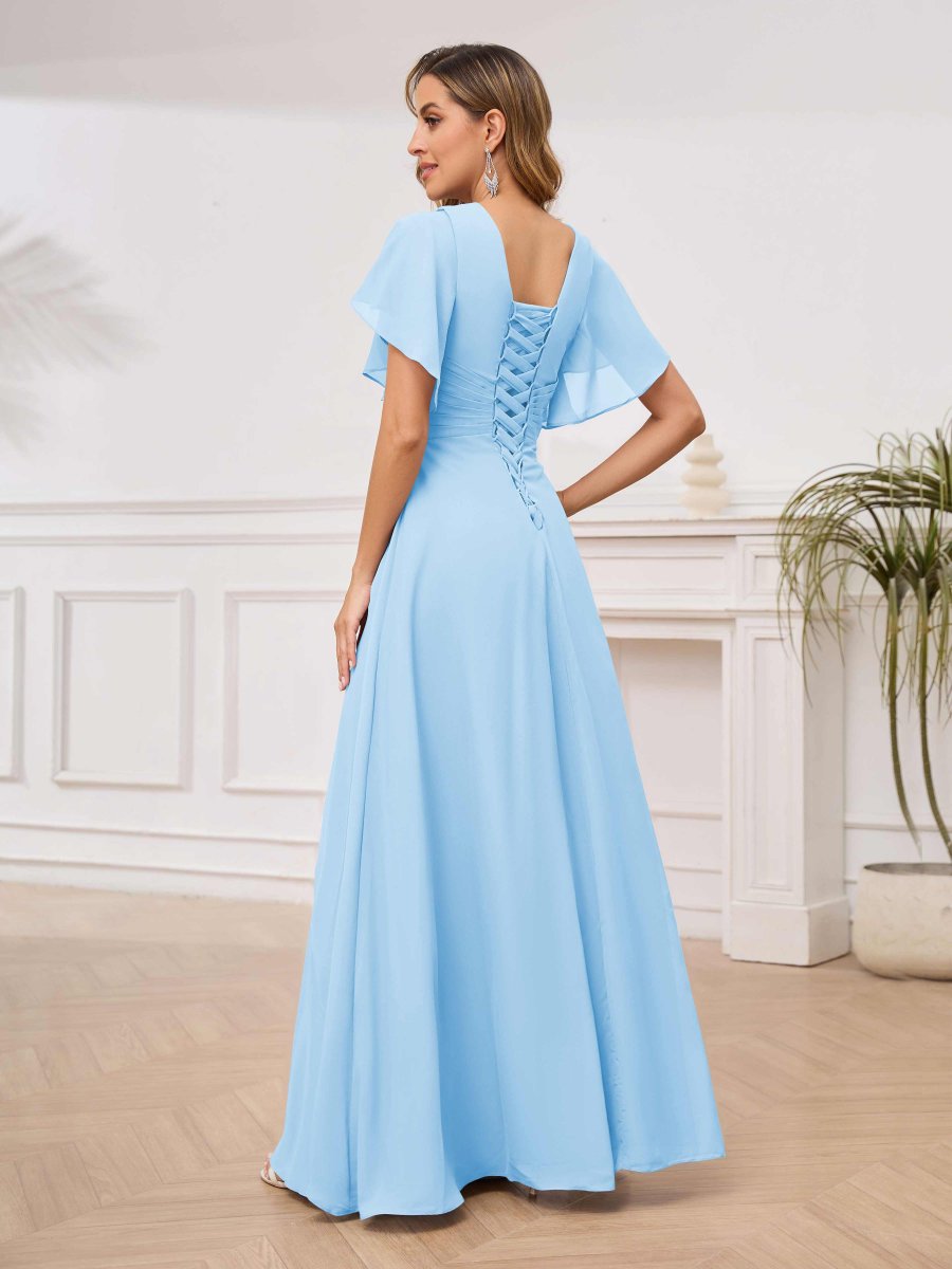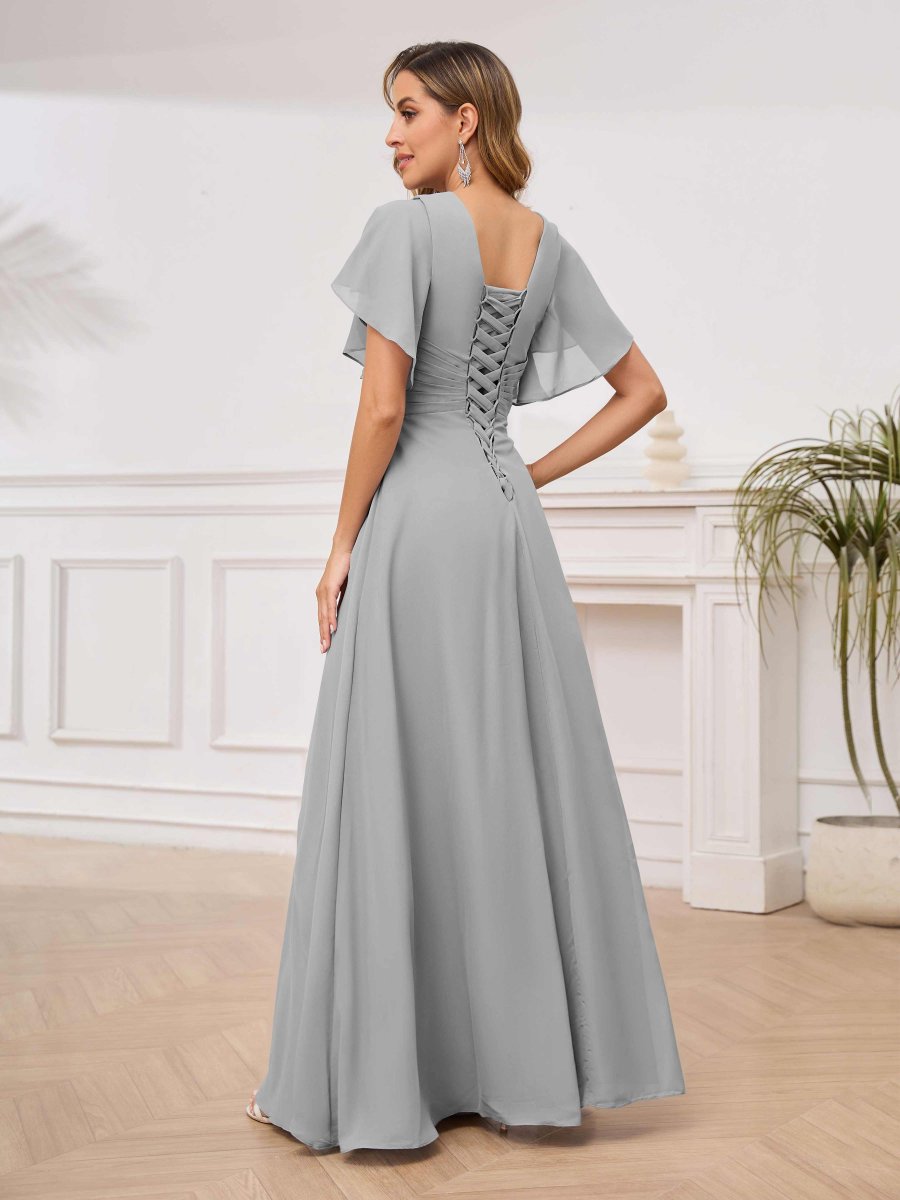 Mère De Mariée En Mousseline À Intellectuelle Trompette Col V Longueur Au Sol Aeliana