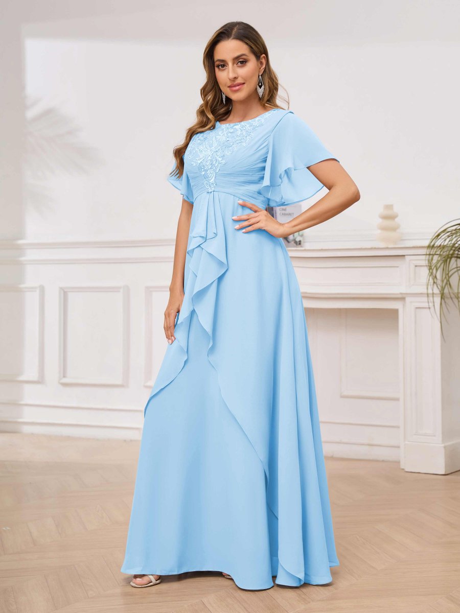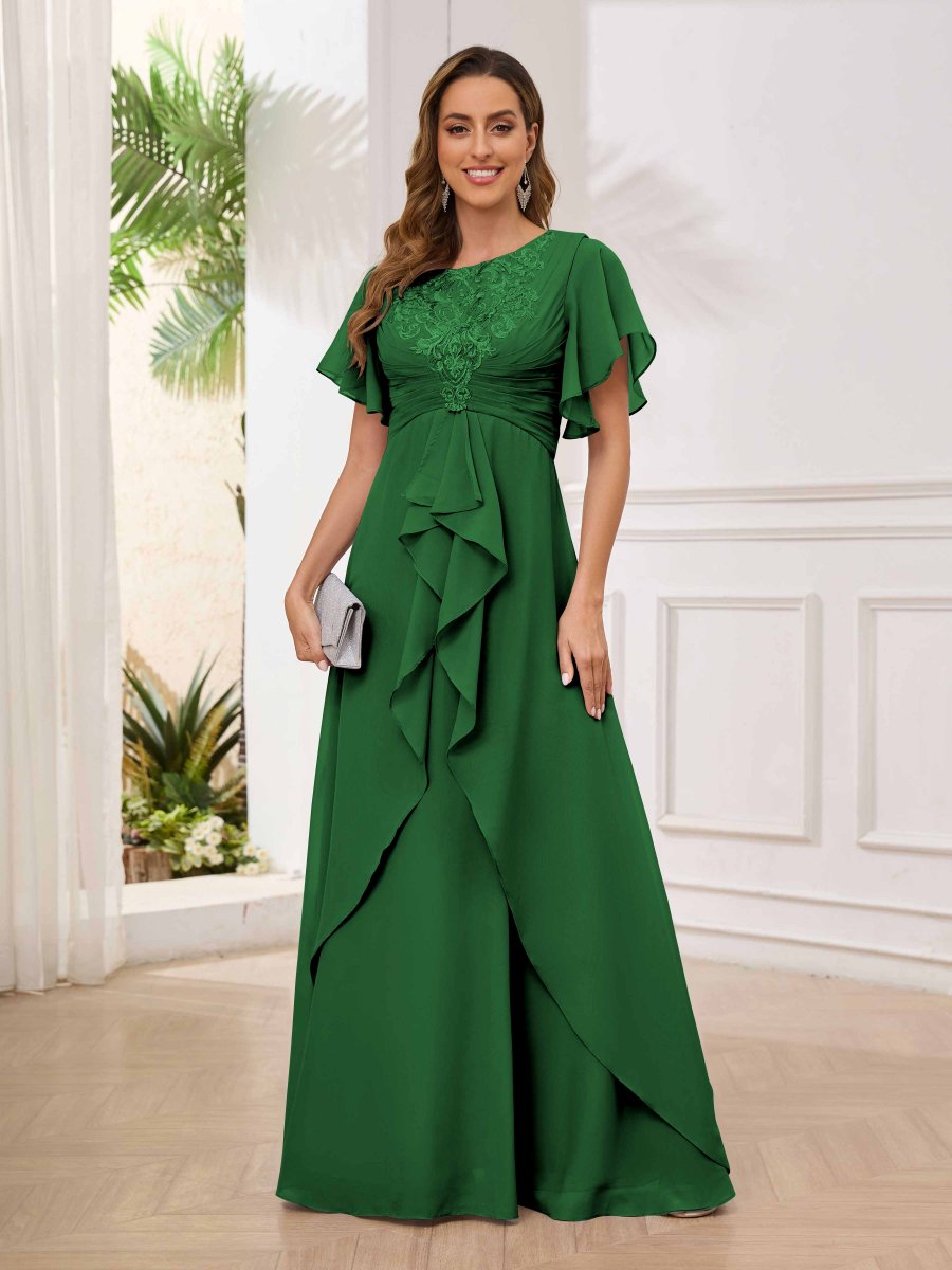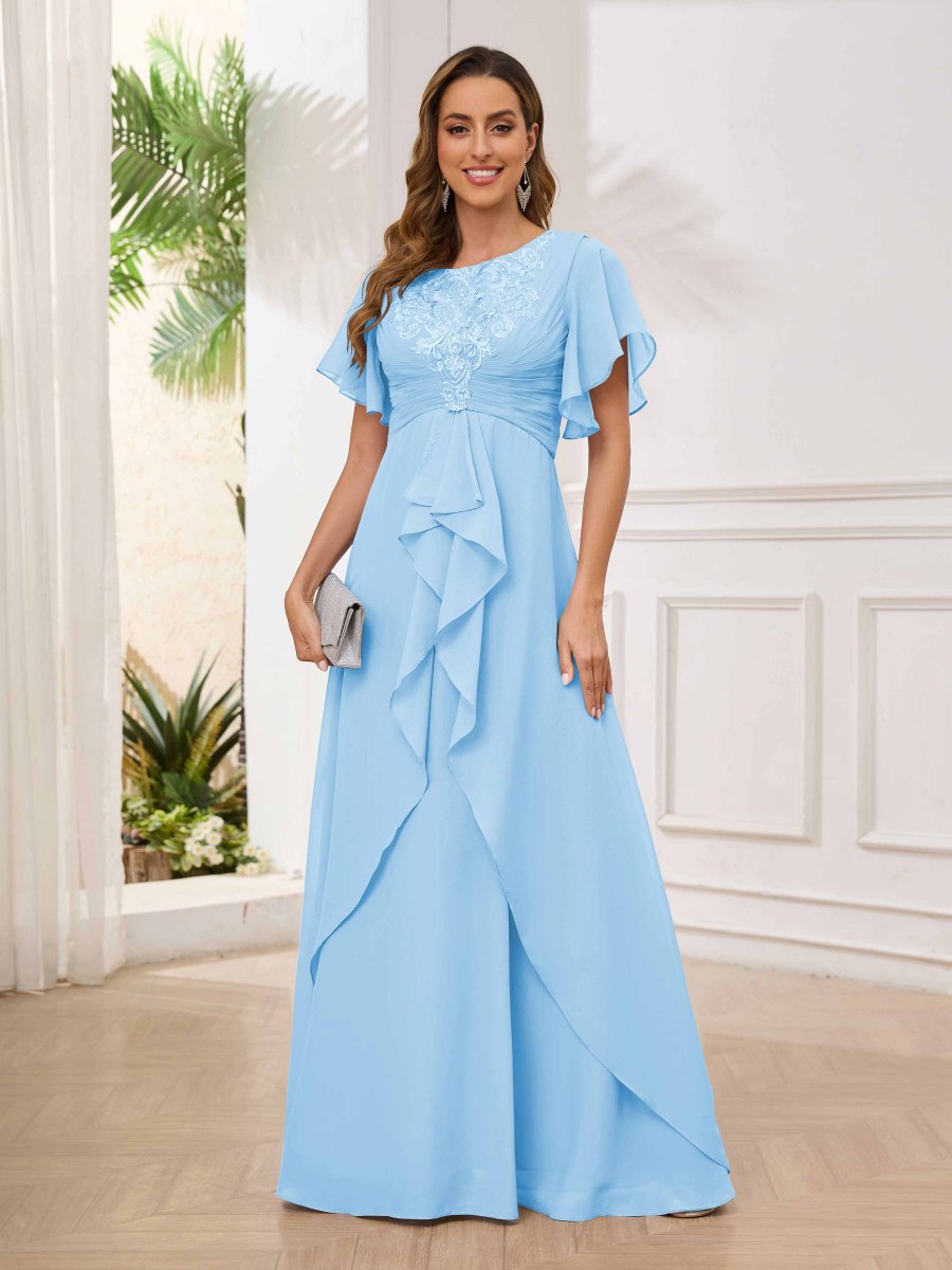 Robes Mère De La Mariée À Volants Dentelle Manches Courtes Louise