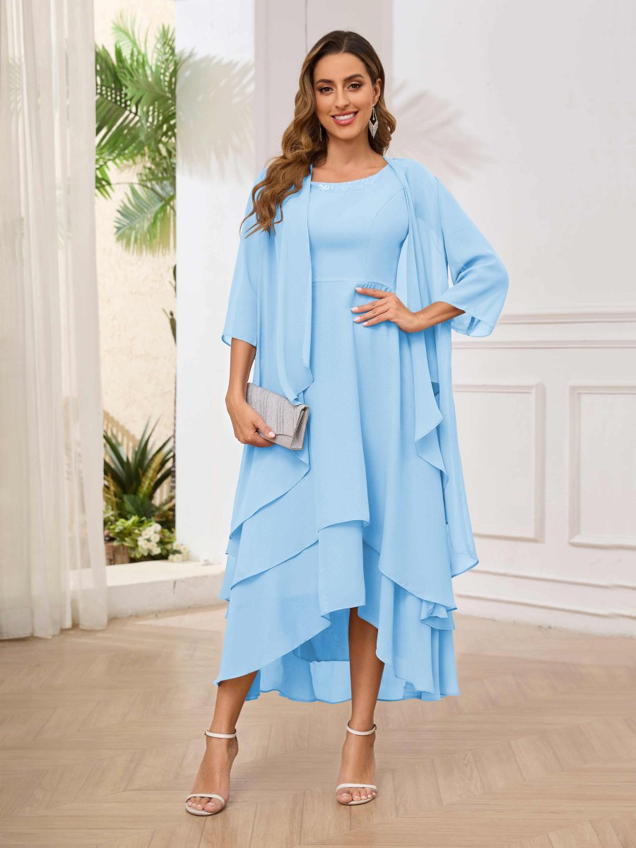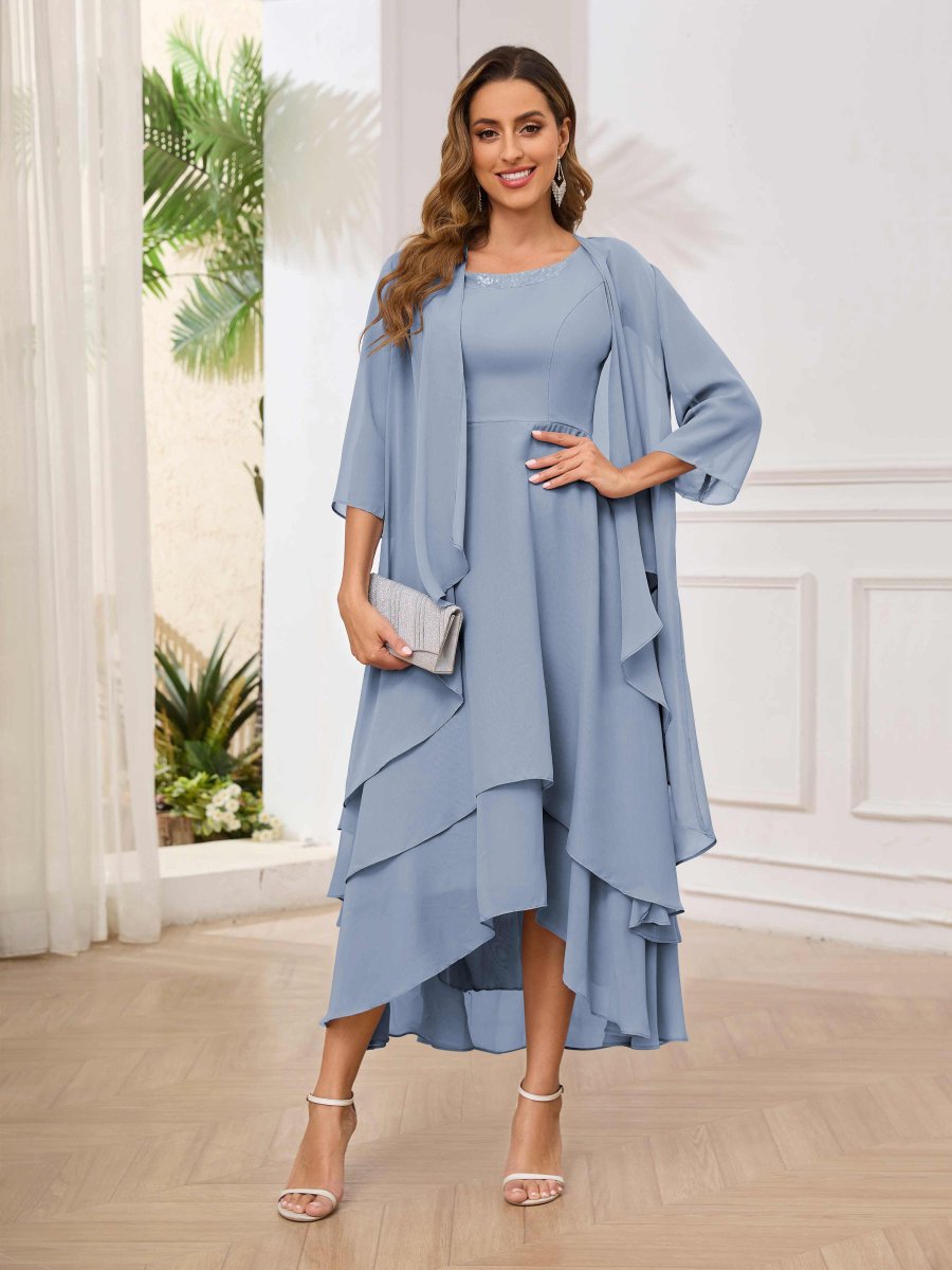 - Craquez pour la robe deux-pièces « Aleah » pour mère de la mariée : élégante, ornée de volants pailletés pour une touche scintillante. Parfaite pour les mariages, cet ensemble allie confort et glamour. Disponible en plusieurs tailles, il sublime votre silhouette avec style et sophistication, idéal pour une occasion inoubliable.