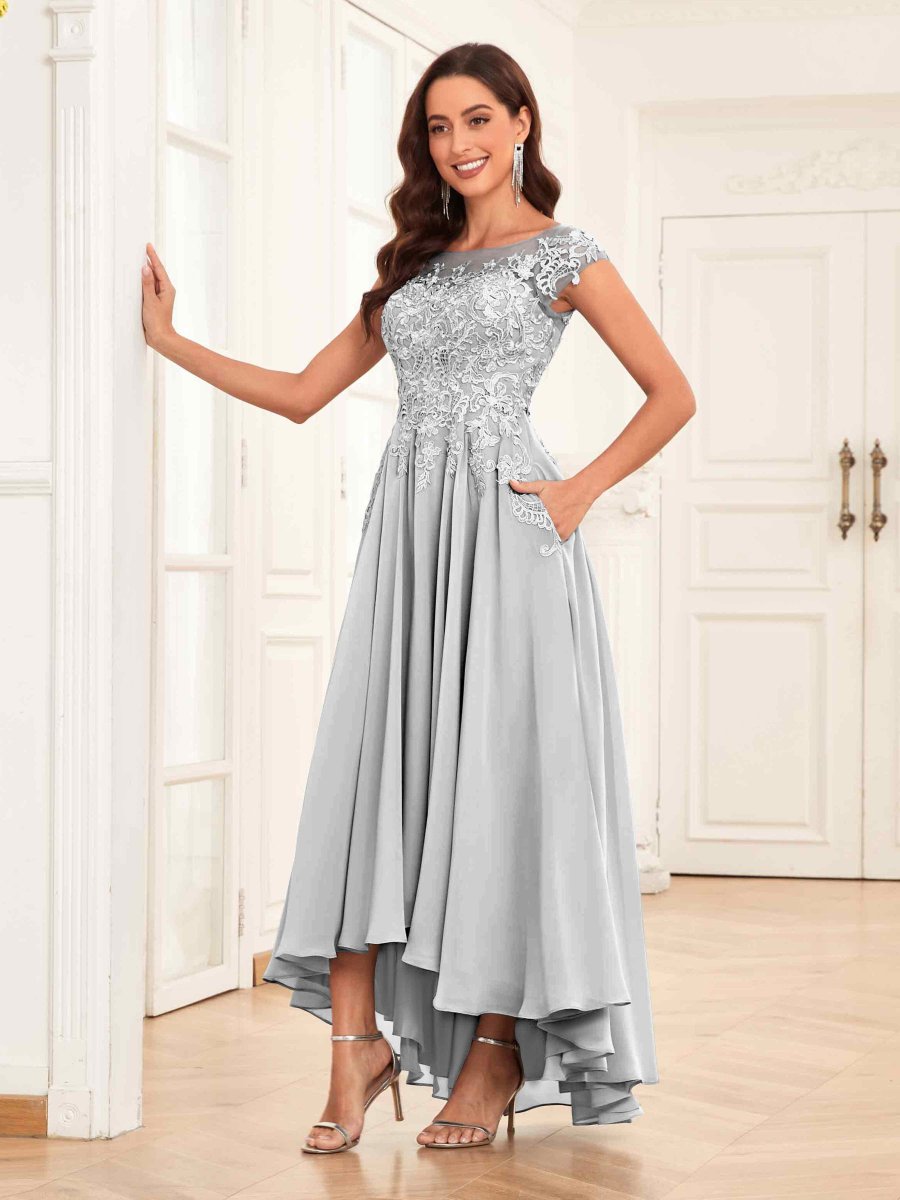 Robes Mère De La Mariée En Mousseline À Appliqués Avec Poches Miriam