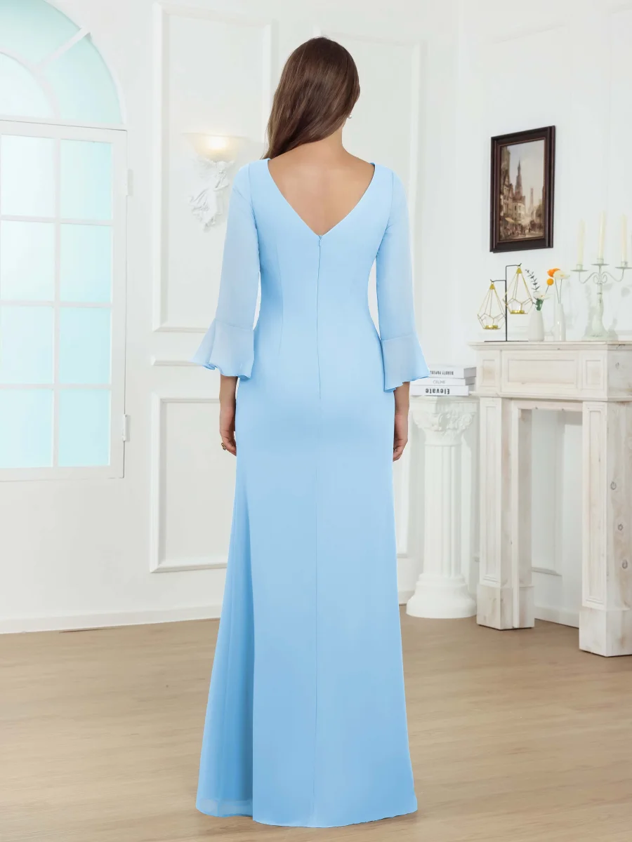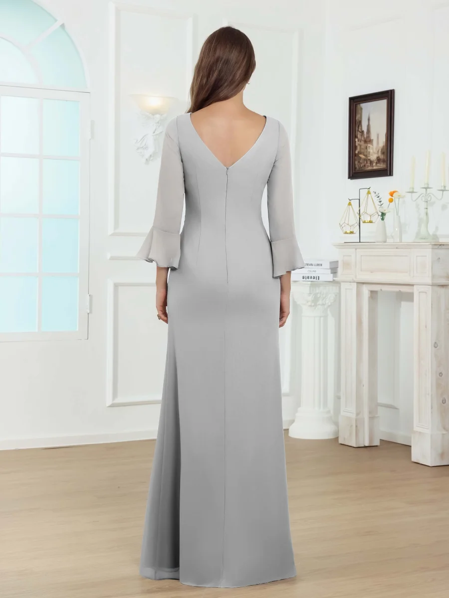 Mère De Mariée En Mousseline À Intellectuelle Trompette Col V Longueur Au Sol Aeliana