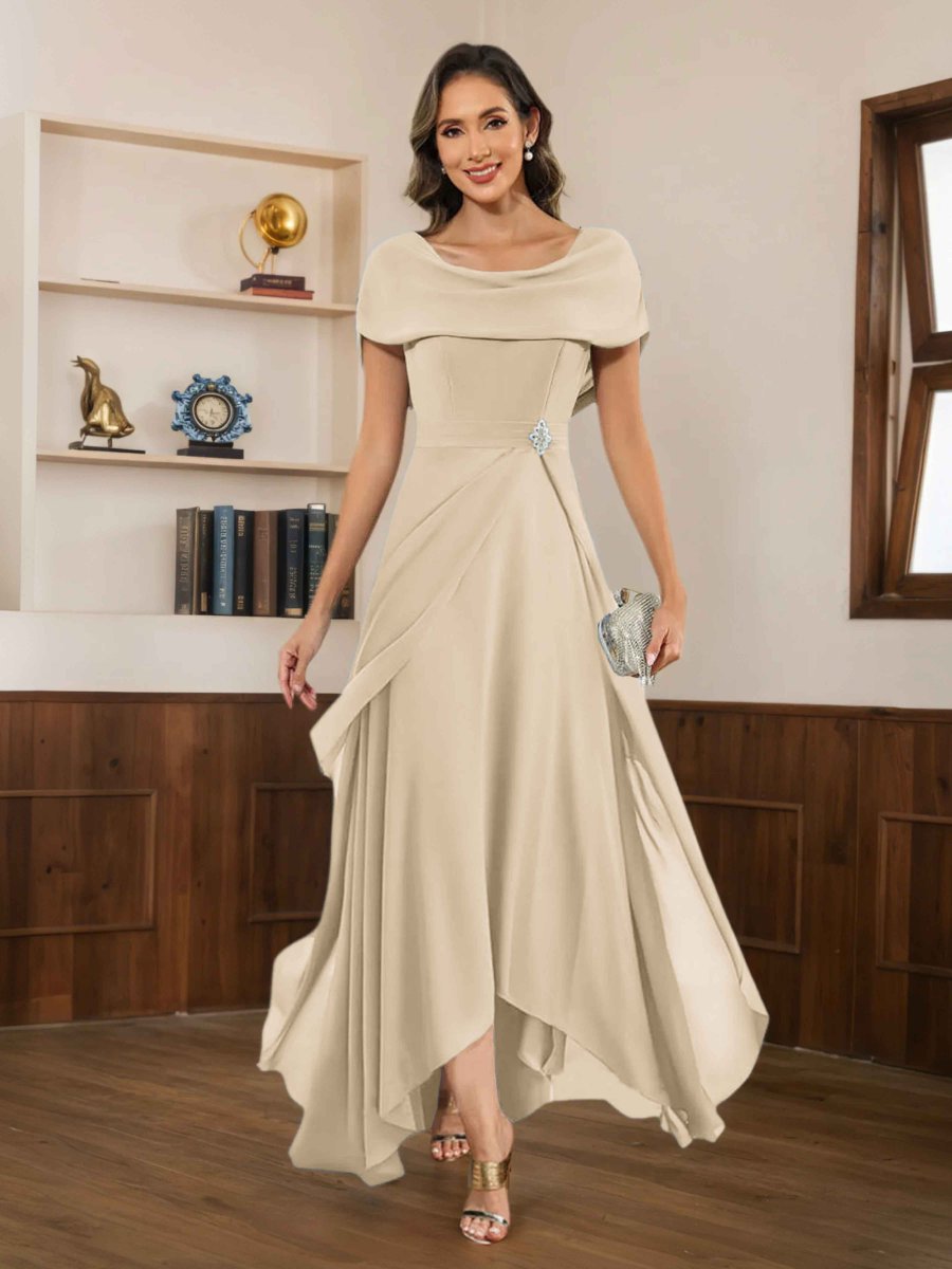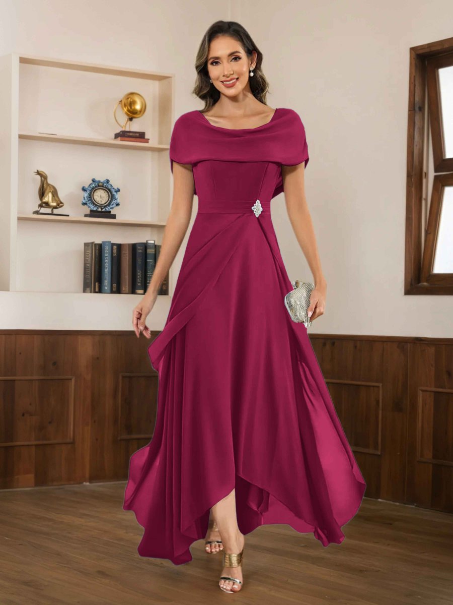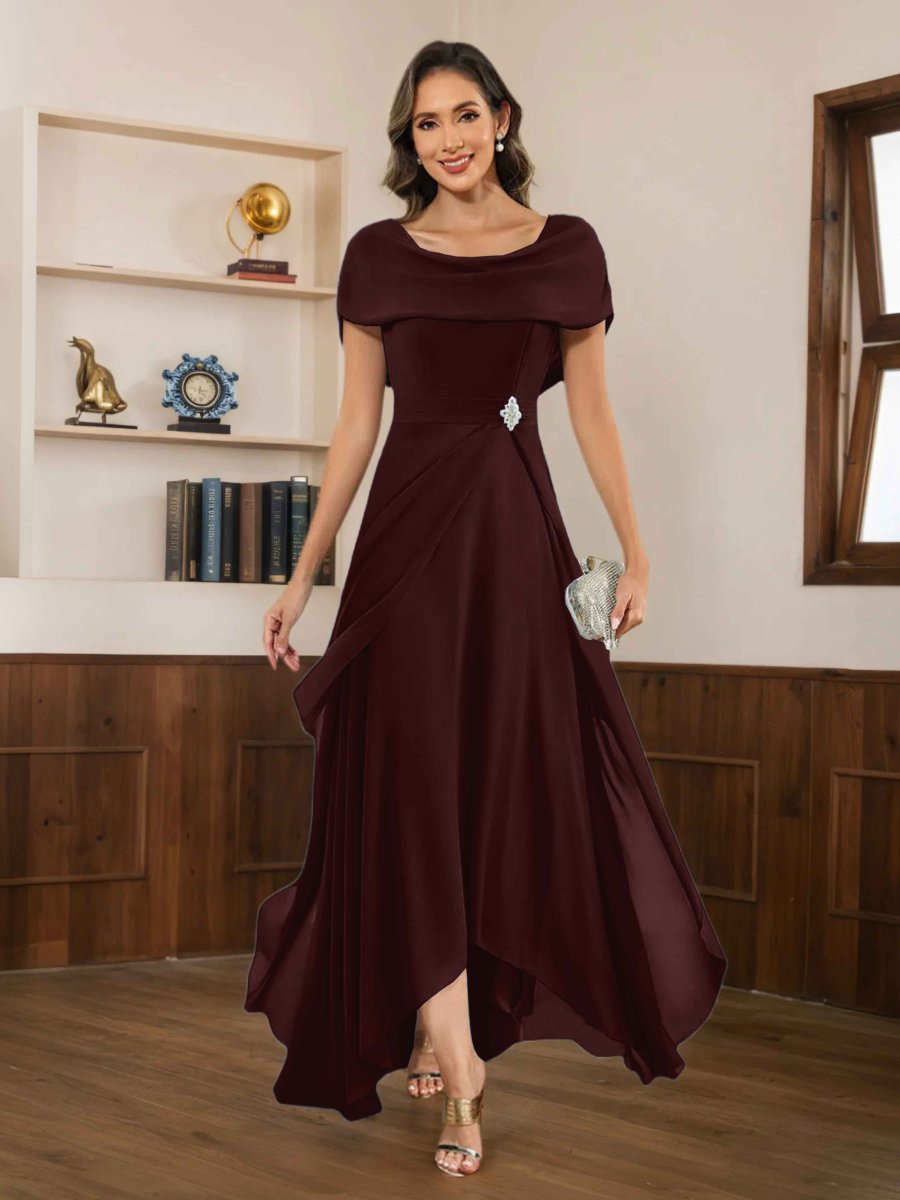 Mère De Mariée En Satin À Moderne Gaine Une Épaule Traîne Balayage Berylia