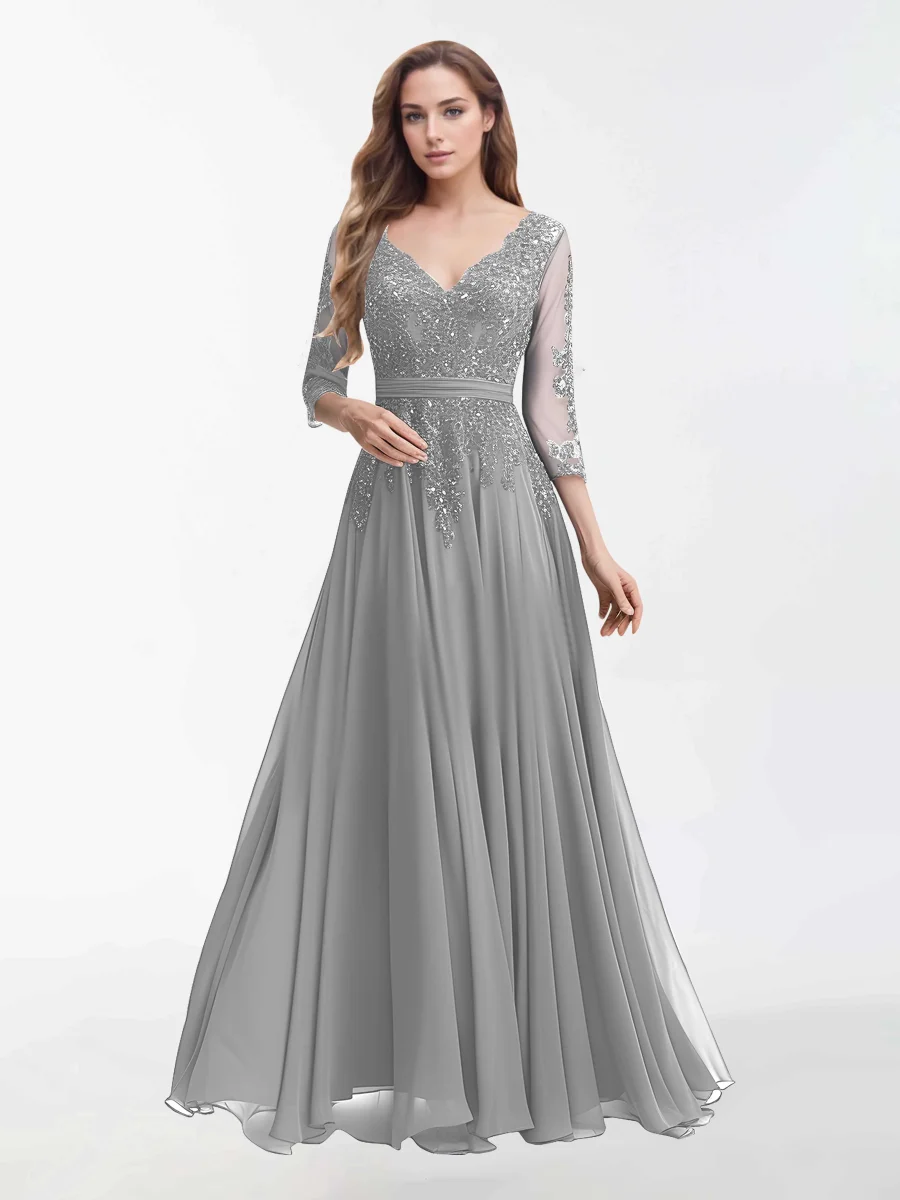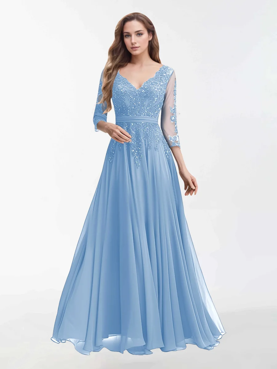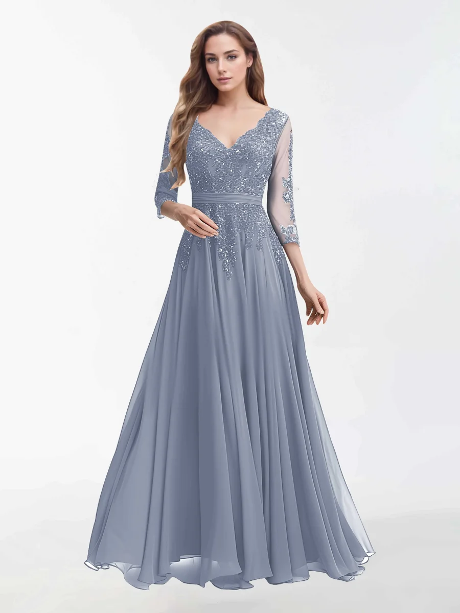 Robes Mère De La Mariée En Mousseline À Col V Et Longueur Au Sol Sutton