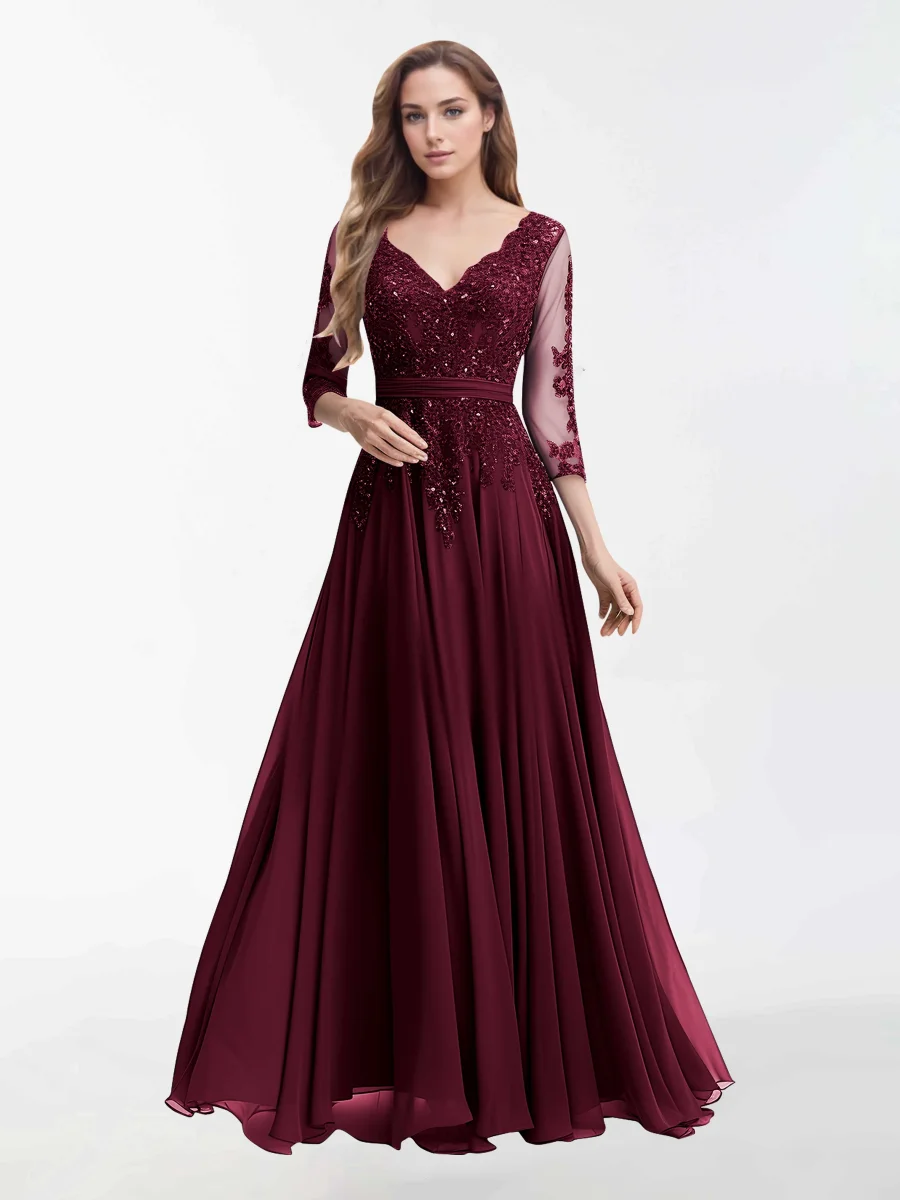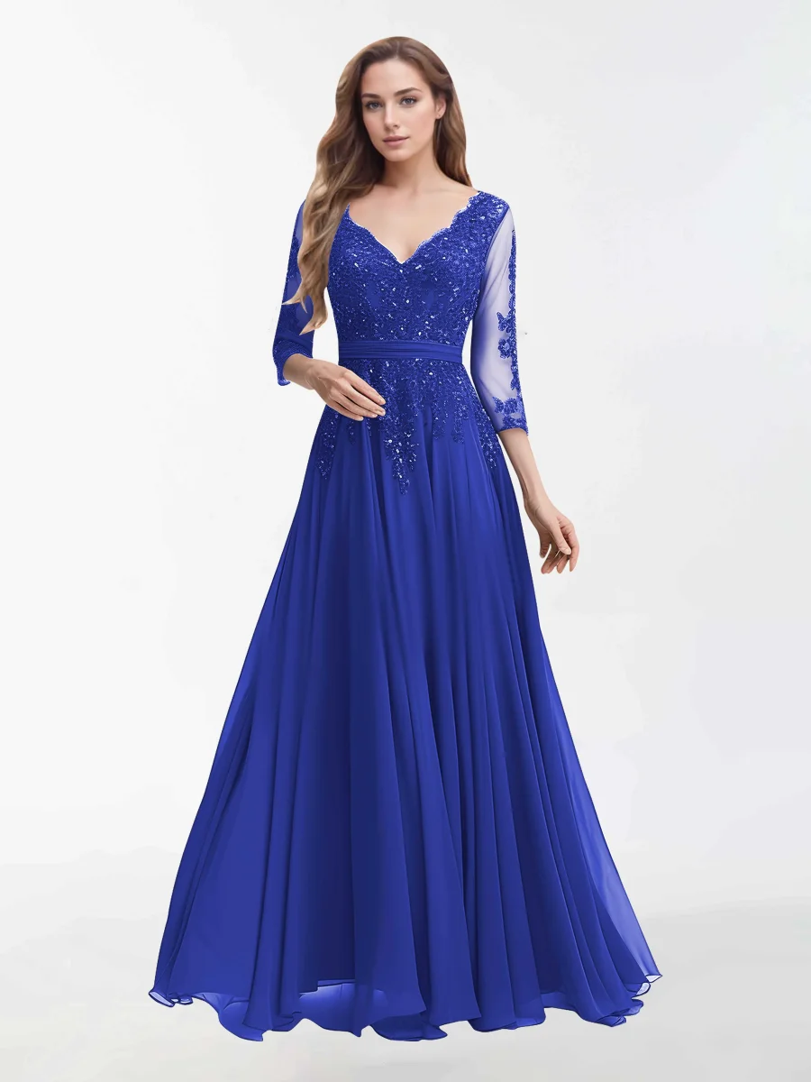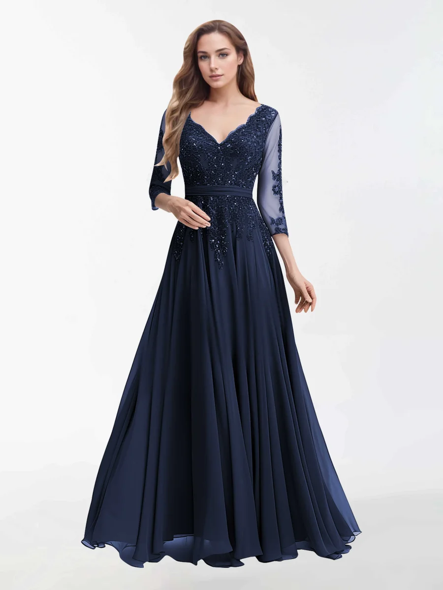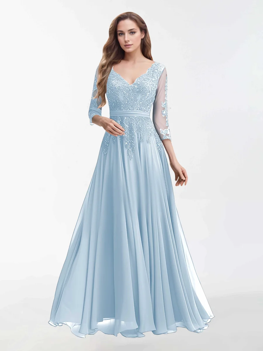 Robes Mère De La Mariée En Mousseline À Col V Et Longueur Au Sol Sutton