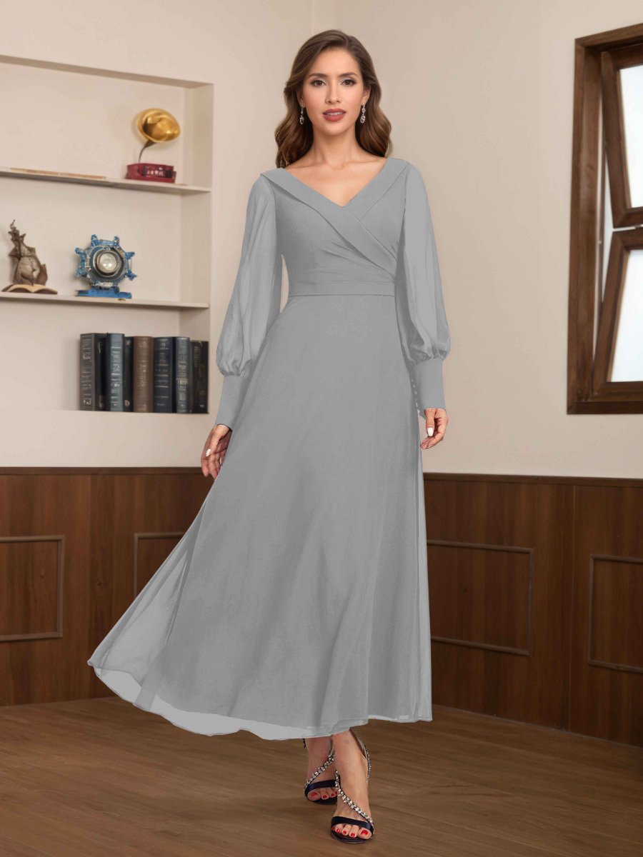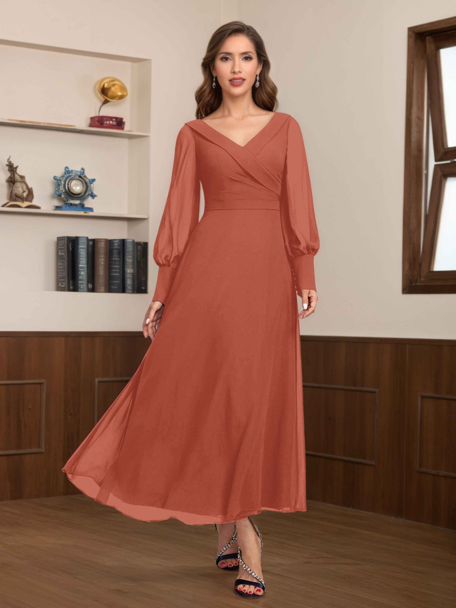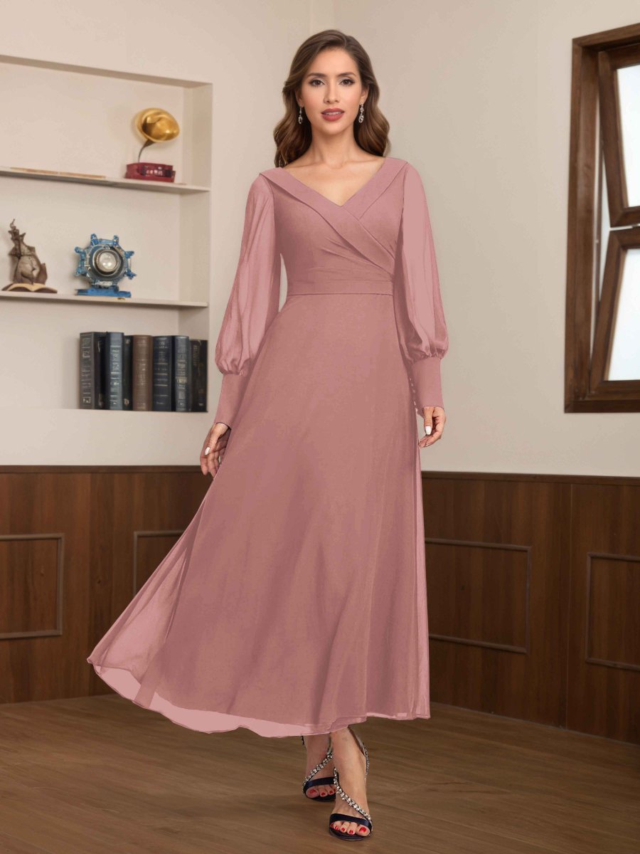 Robes Mère De La Mariée En Mousseline À Col V Manches Longues Nyx