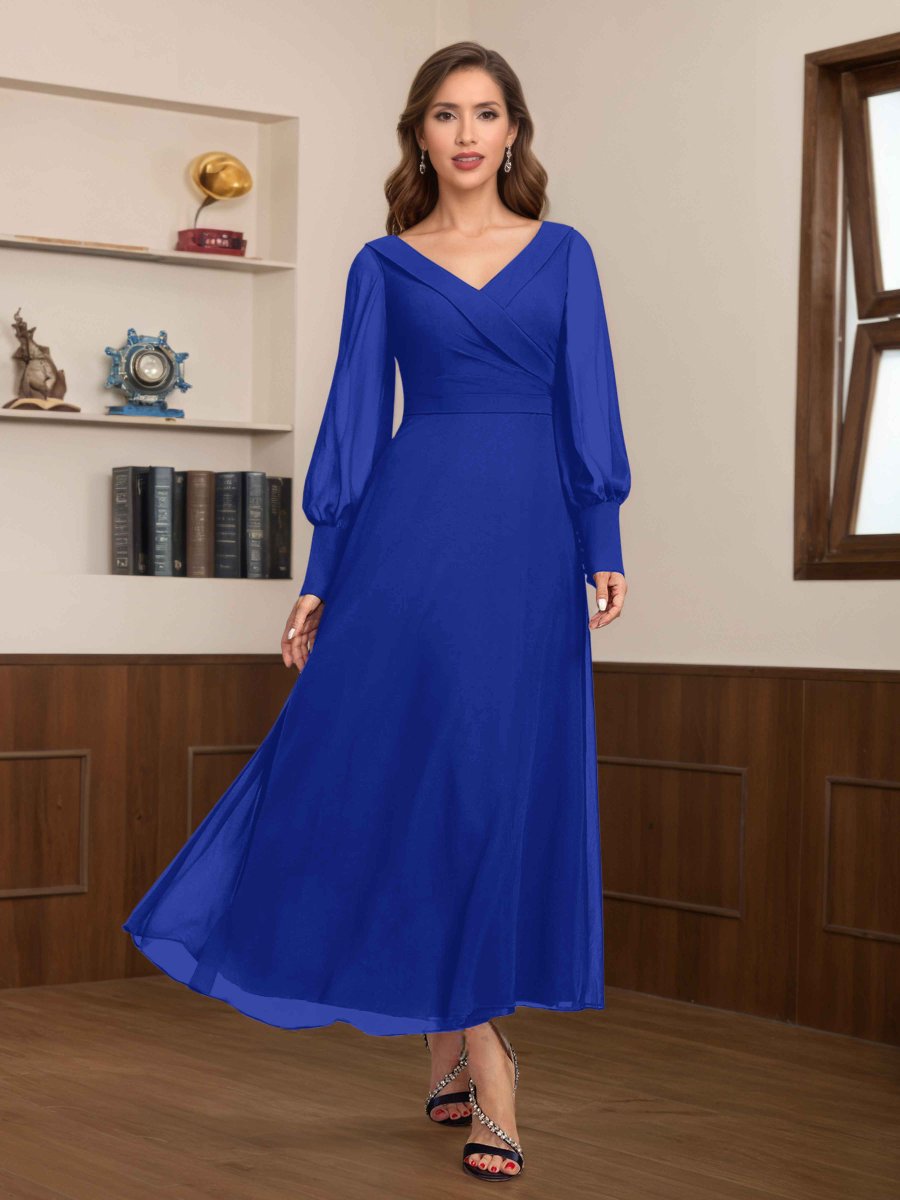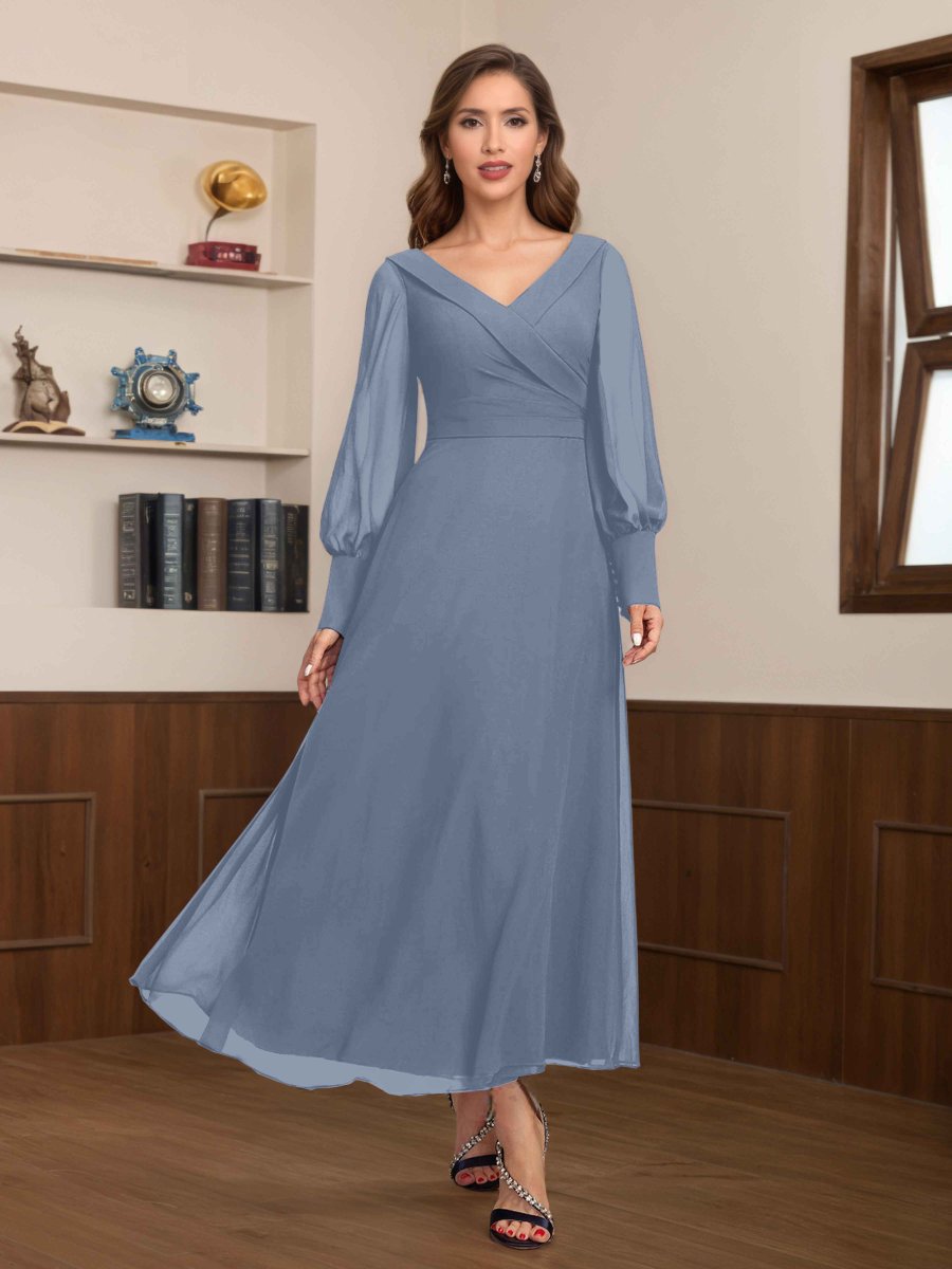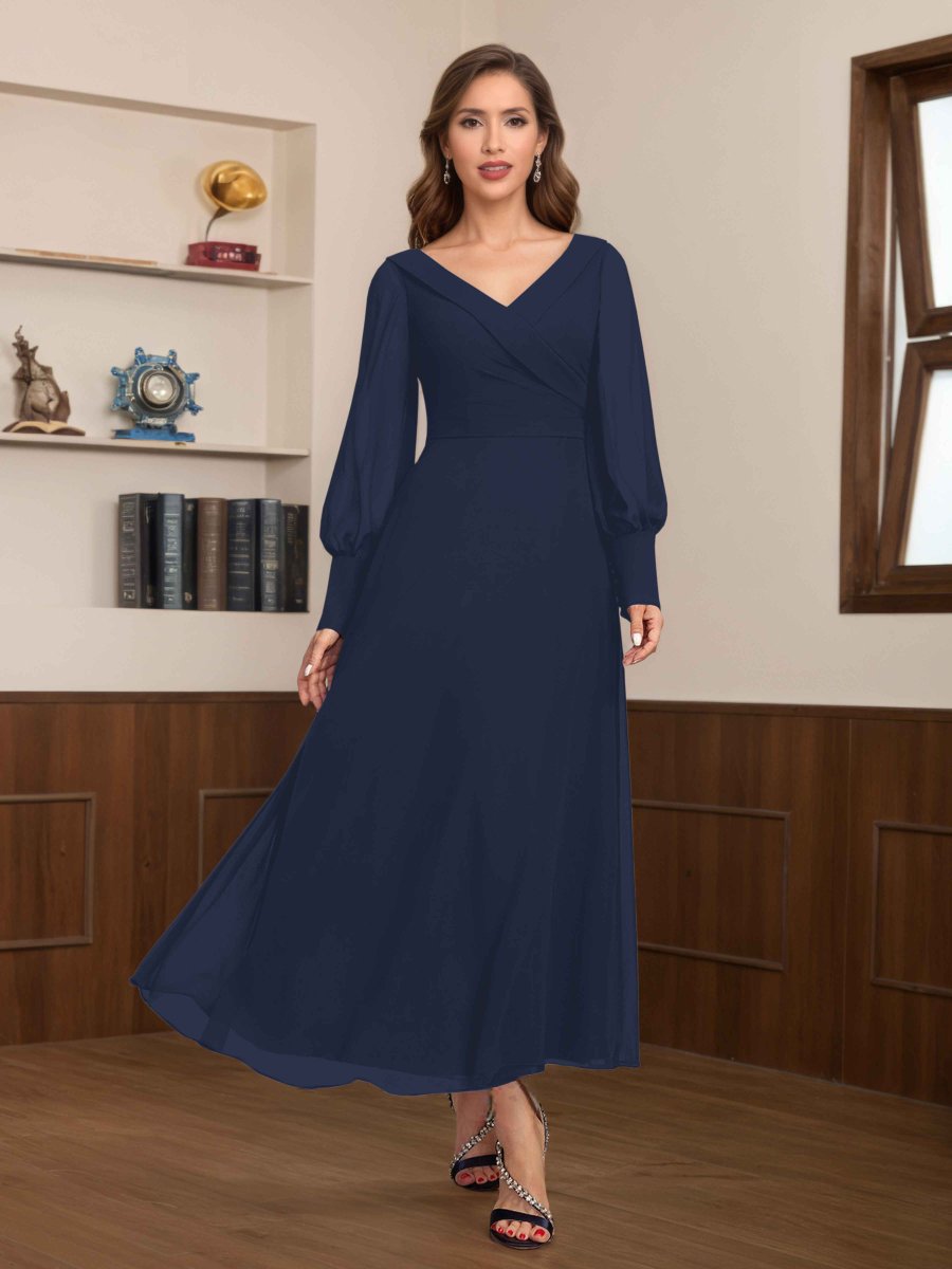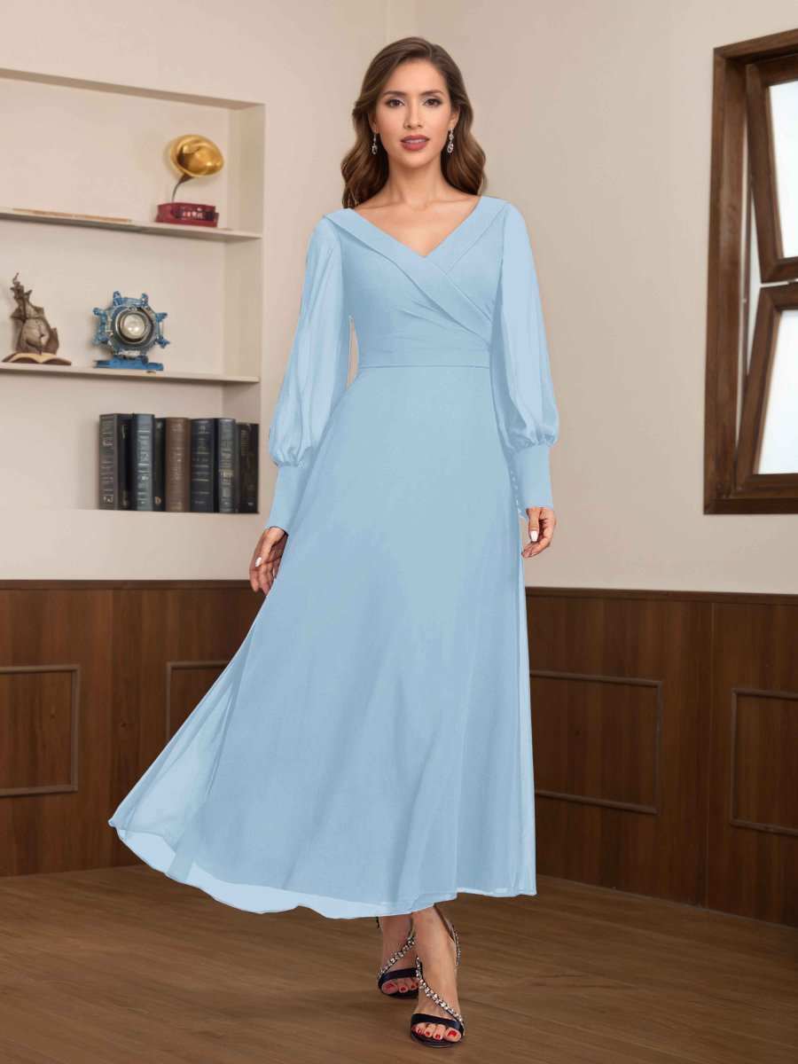 Robes Mère De La Mariée En Mousseline À Col V Manches Longues Nyx